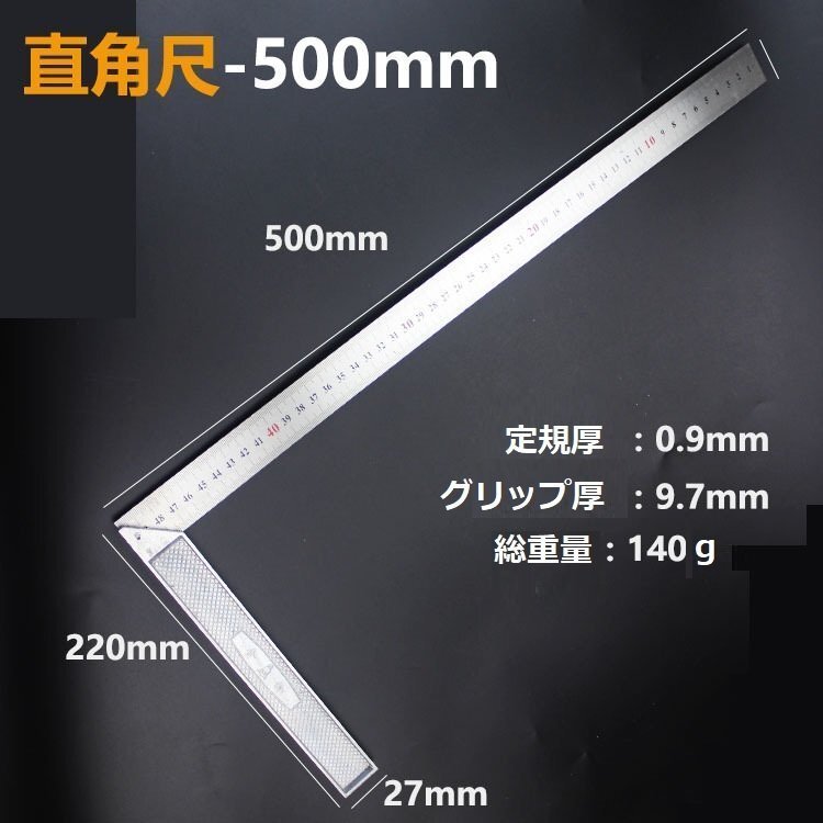 500mm L型 スチールスケール 差し金 曲尺 バークランプ 直角 定規 水平器