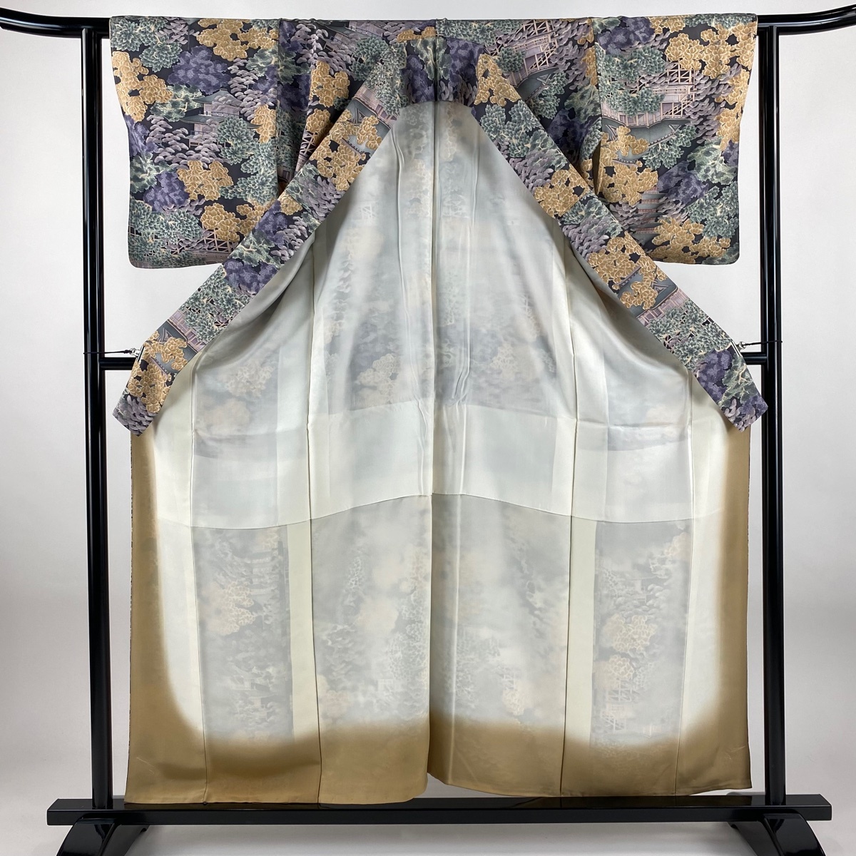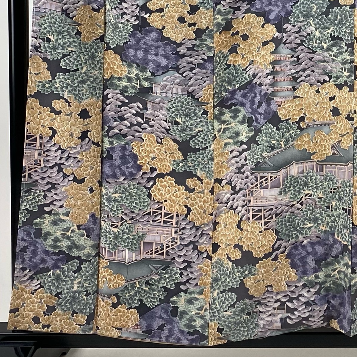 | 小紋 美品 秀品 樹木 建物 灰紫 袷 身丈158 裄丈62 S 正絹 【中古】 |