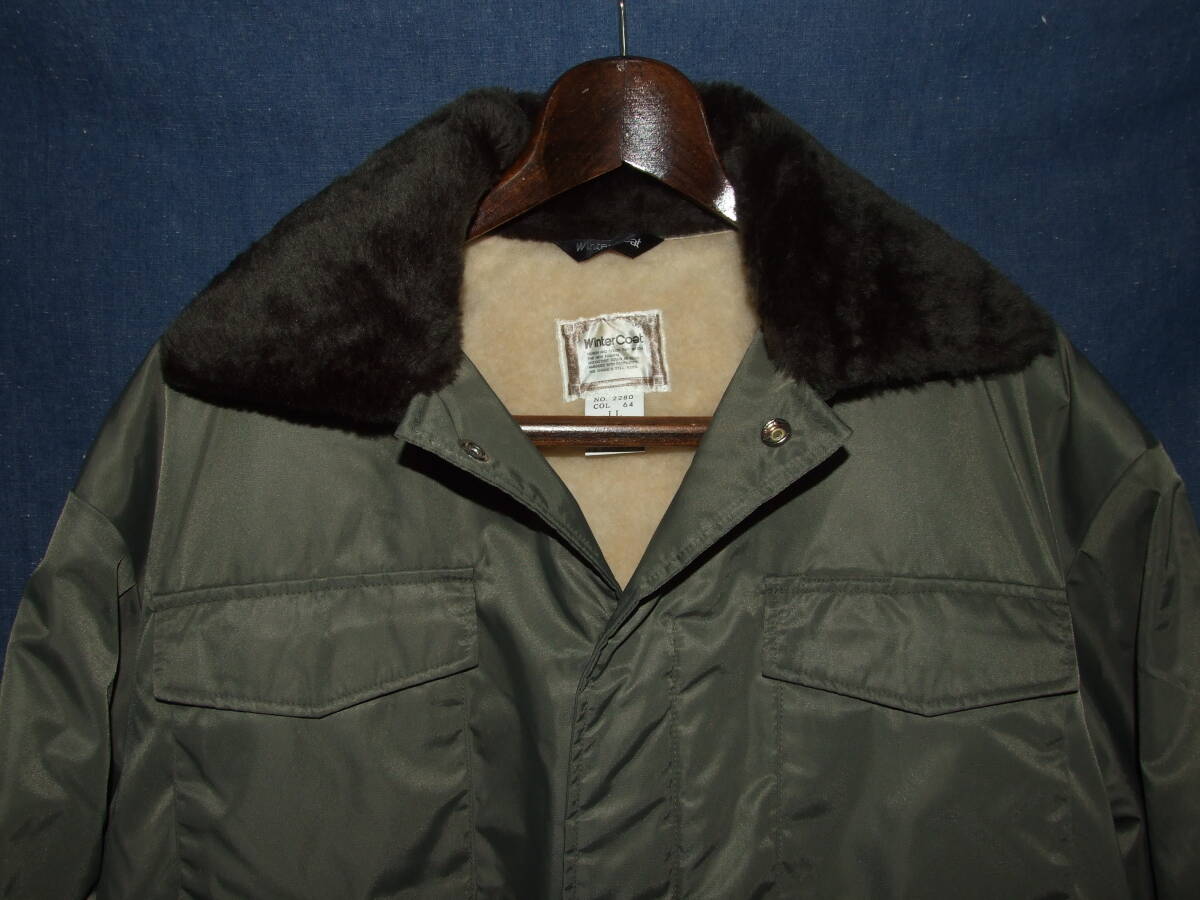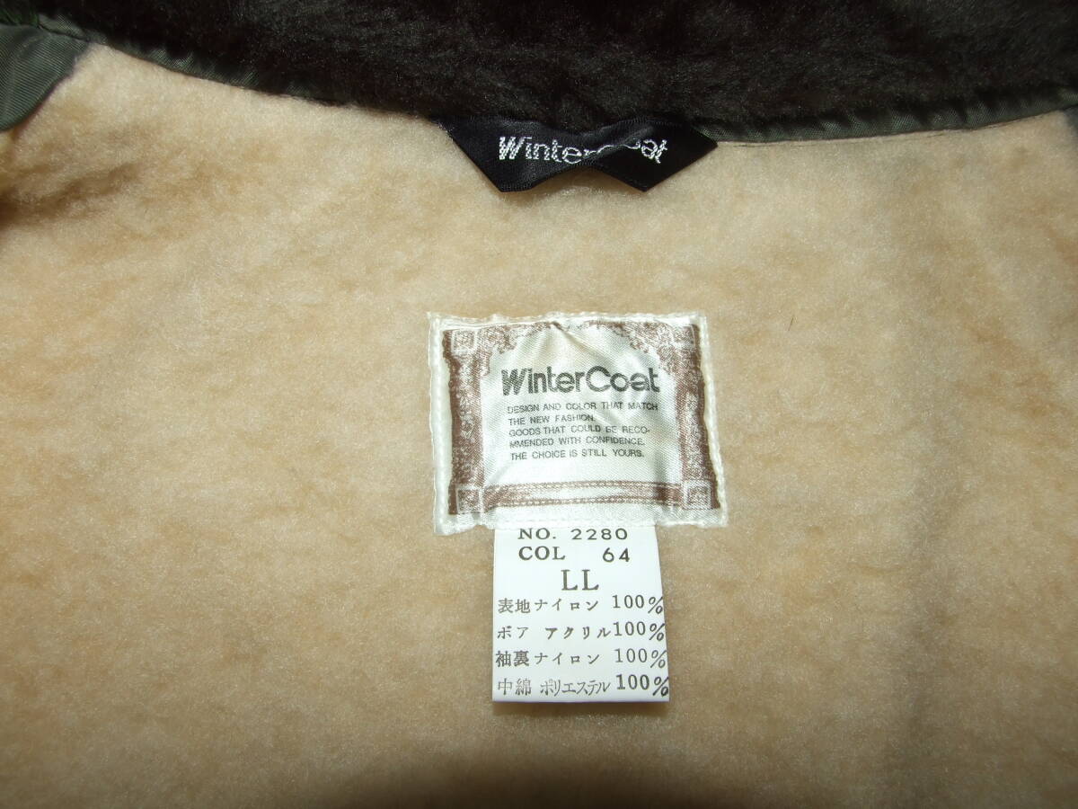 デッドストックWinter Coat/ウィンターコートの裏ボアドカジャンになります。カラーはカーキグリーン系、表記サイズはLLになります。実寸着丈80/肩幅57/袖丈64.5/身幅67.5程でした。外出未使用品ですが、あくまでも個人ストック品ですので、試着程度はしており、収納時の皺などはあるとお考え下さい。