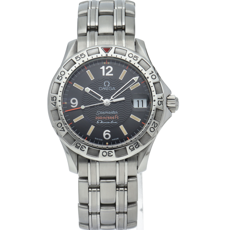 オメガ シーマスター オメガマチック オートクォーツ 36mm 2516.5 箱 保証書 SS メンズ時計 ブラック 仕上げ済