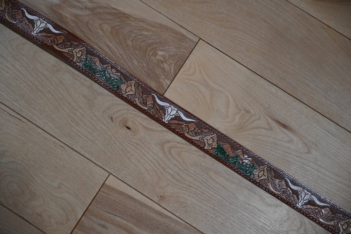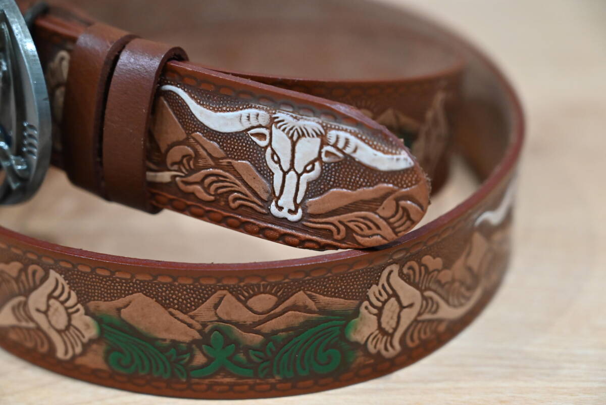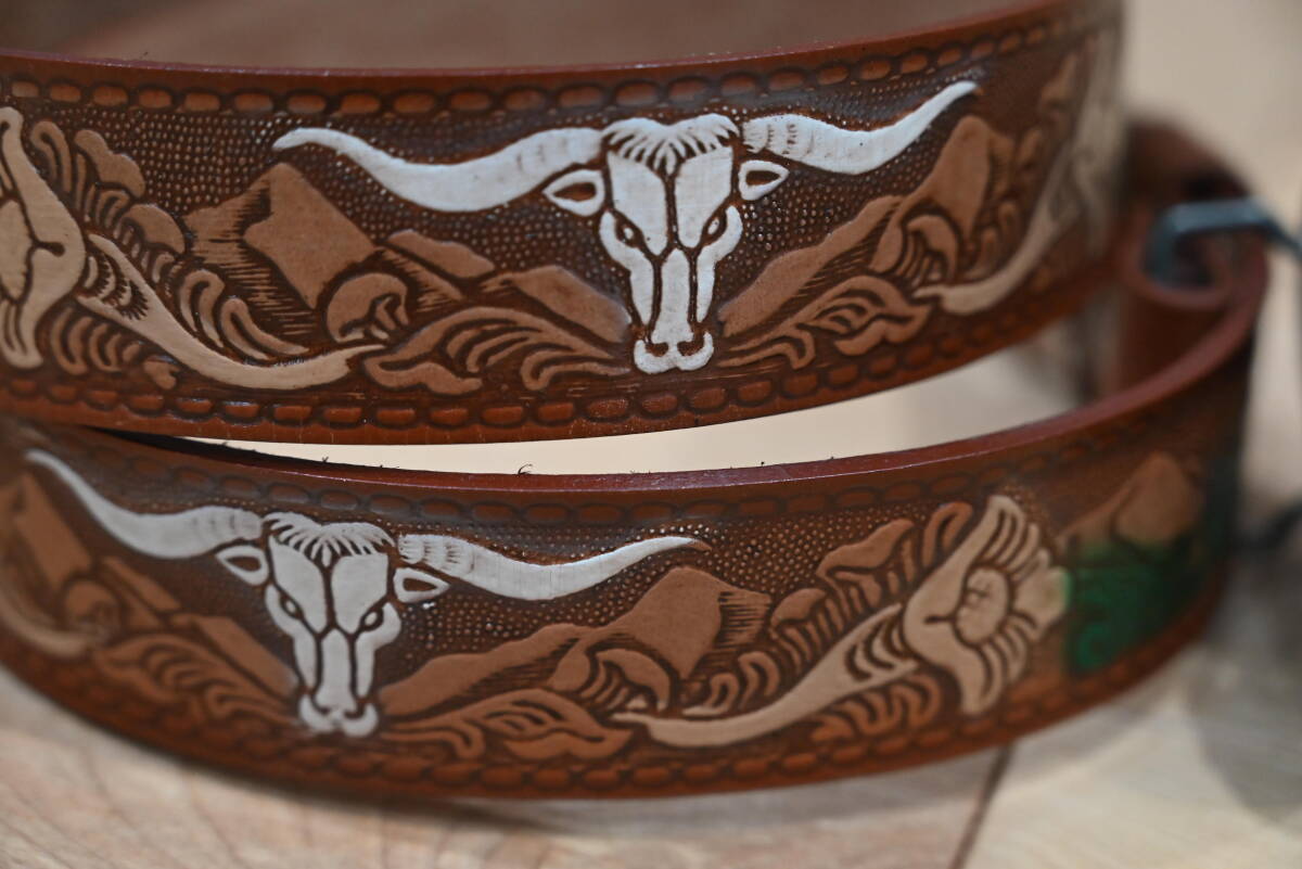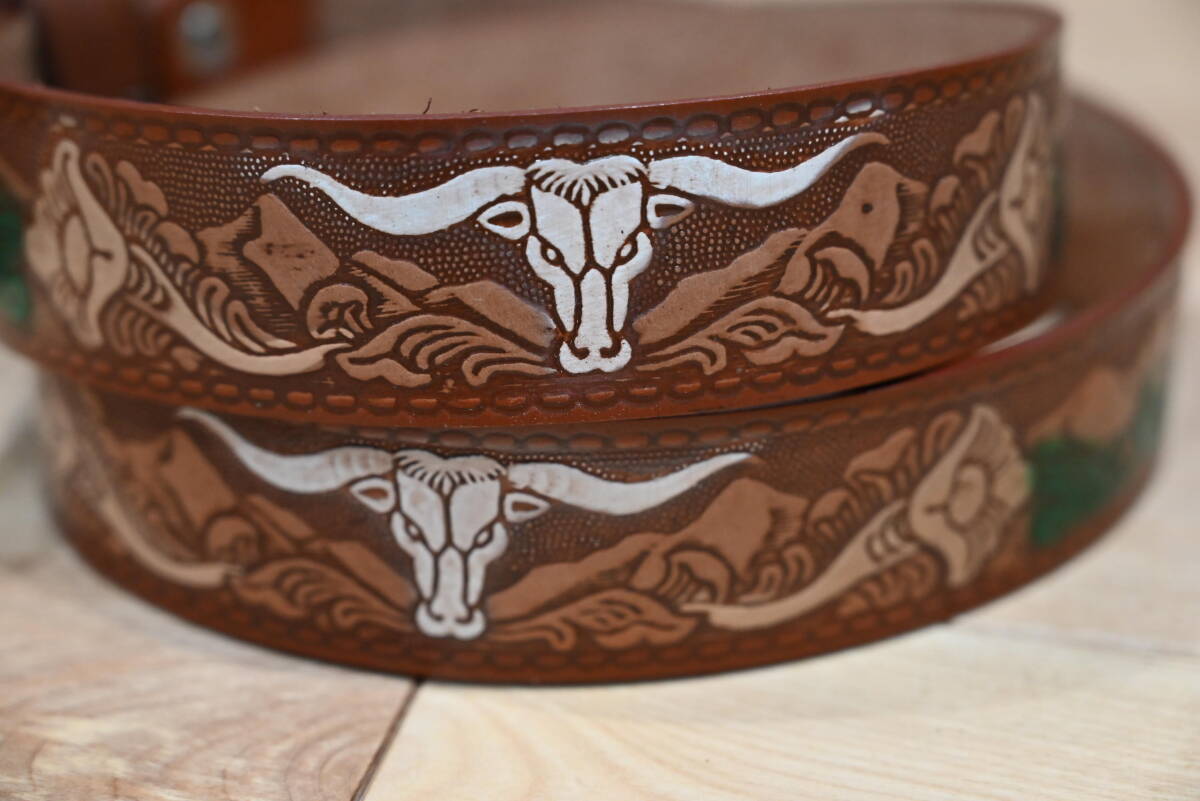 | 商品説明 | 牛革で作成した、カービング柄 バックル付きベルトです。 色はブラウンで、未使用品になります。 サイズは、ベルト本体は114㎝、幅は3.8㎝、バックルは楕円形で約縦7㎝×横9㎝程になります。 花柄とバッファローの顔を交互にデザインして、ペイントを施してウエスタンスタイル仕上げになっています。革の厚さは約3㎜程になります。 バックルはモノトーン調でバッファローの顔を入れたデザインなので、本体のベルトを合うように組み合わせています。この点はインパクトが出ています。素材は、ニッケルになります。 ベルトの穴あけは、購入者の方にお願いします。フリーサイズで可能になるよう当方では加工無しの状態で出品致します。 発送は、定形外郵便を利用します。送料は、660円になります。 こちらは、ハンドメイドなので、多少の傷や汚れ等はご了承下さい。細かい点まで、気になる方はご遠慮下さい。 |
