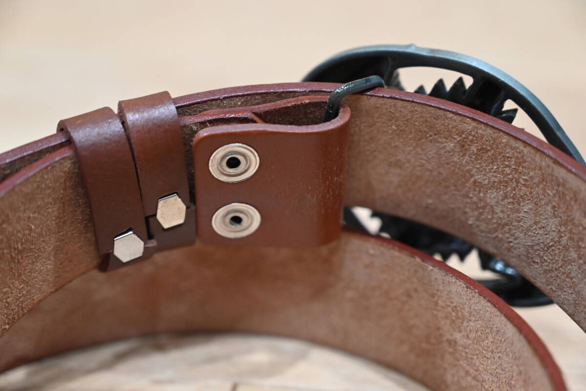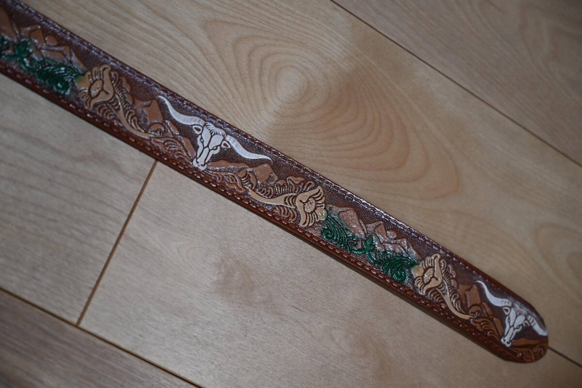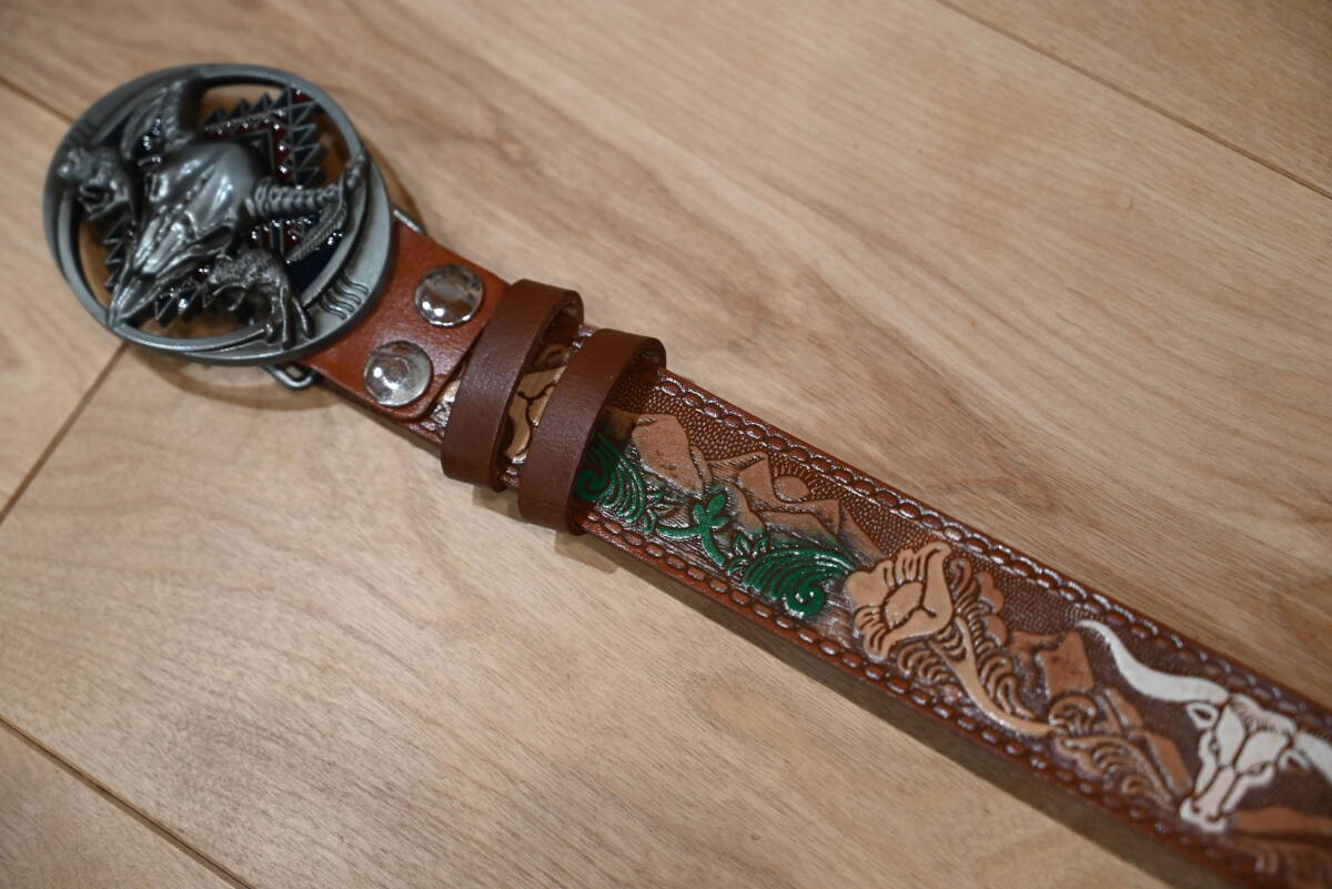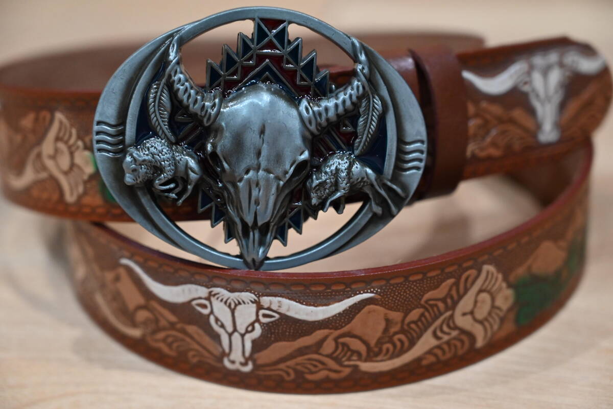 | 商品説明 | 牛革で作成した、カービング柄 バックル付きベルトです。 色はブラウンで、未使用品になります。 サイズは、ベルト本体は114㎝、幅は3.8㎝、バックルは楕円形で約縦7㎝×横9㎝程になります。 花柄とバッファローの顔を交互にデザインして、ペイントを施してウエスタンスタイル仕上げになっています。革の厚さは約3㎜程になります。 バックルはモノトーン調でバッファローの顔を入れたデザインなので、本体のベルトを合うように組み合わせています。この点はインパクトが出ています。素材は、ニッケルになります。 ベルトの穴あけは、購入者の方にお願いします。フリーサイズで可能になるよう当方では加工無しの状態で出品致します。 発送は、定形外郵便を利用します。送料は、660円になります。 こちらは、ハンドメイドなので、多少の傷や汚れ等はご了承下さい。細かい点まで、気になる方はご遠慮下さい。 |