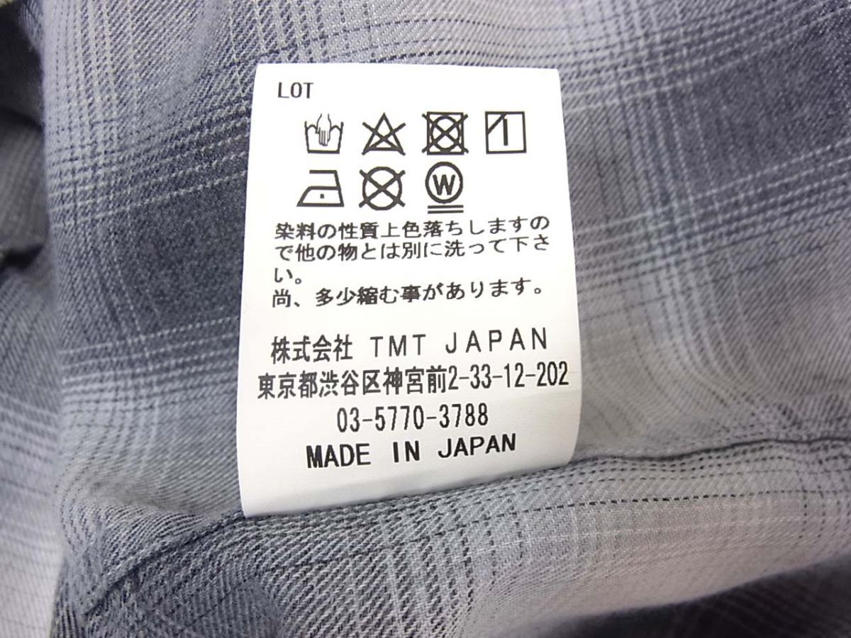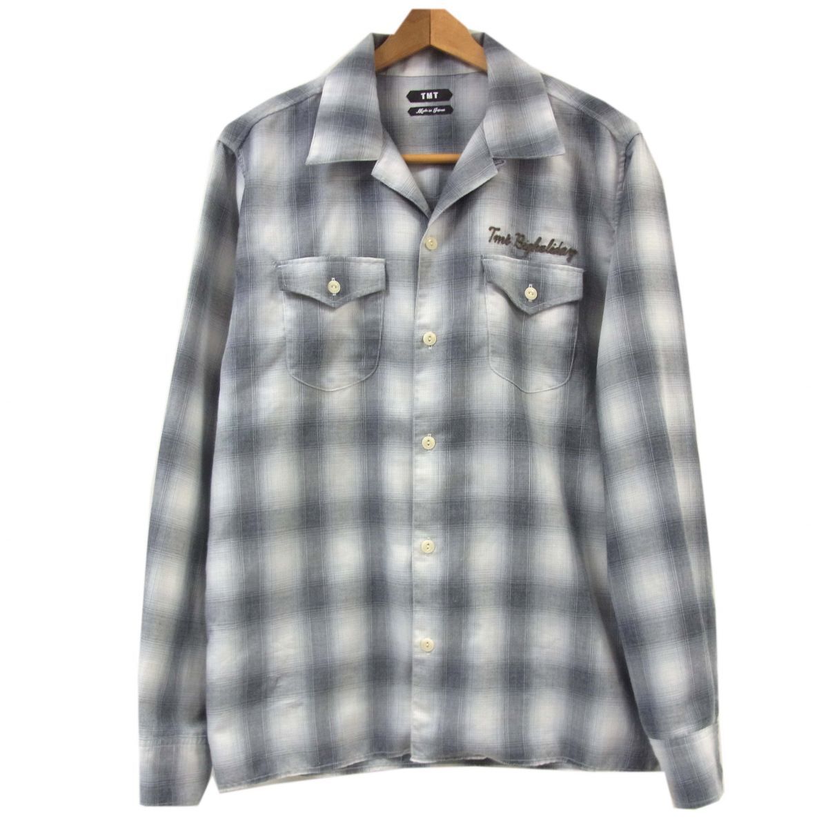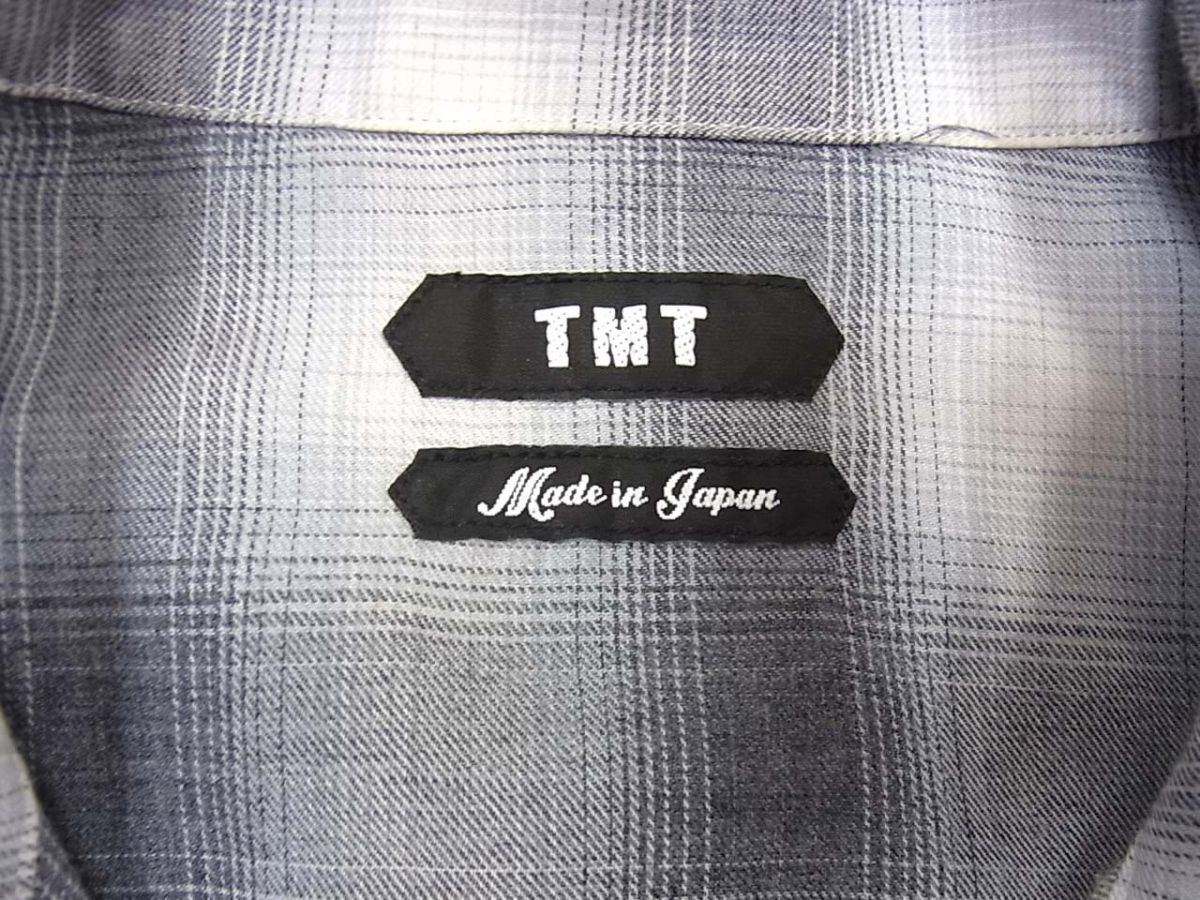 ◆TMT オンブレチェック オープンカラーシャツ 猫目ボタン 長袖 日本製 ティーエムティー メンズ 1円スタート