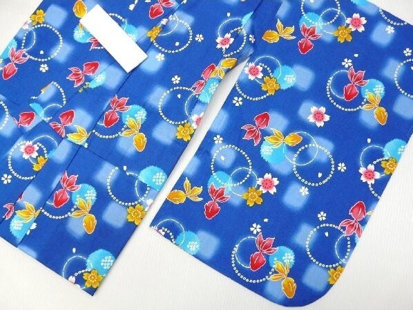 74 新品 女児 子供浴衣 青に金魚 110cm