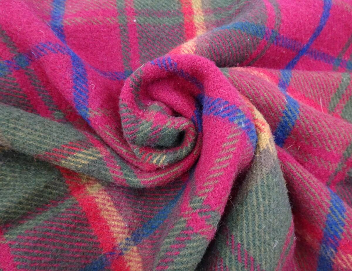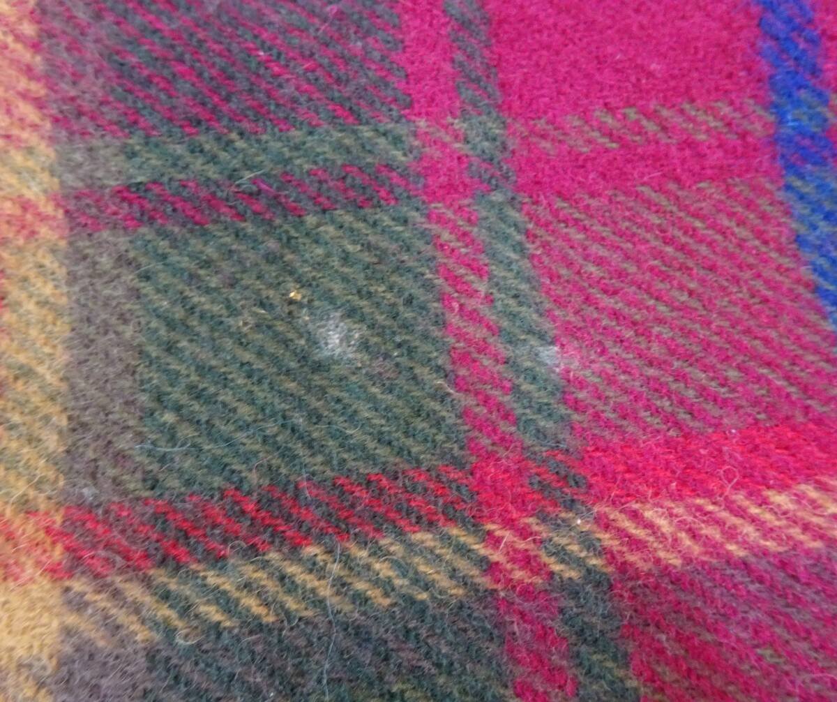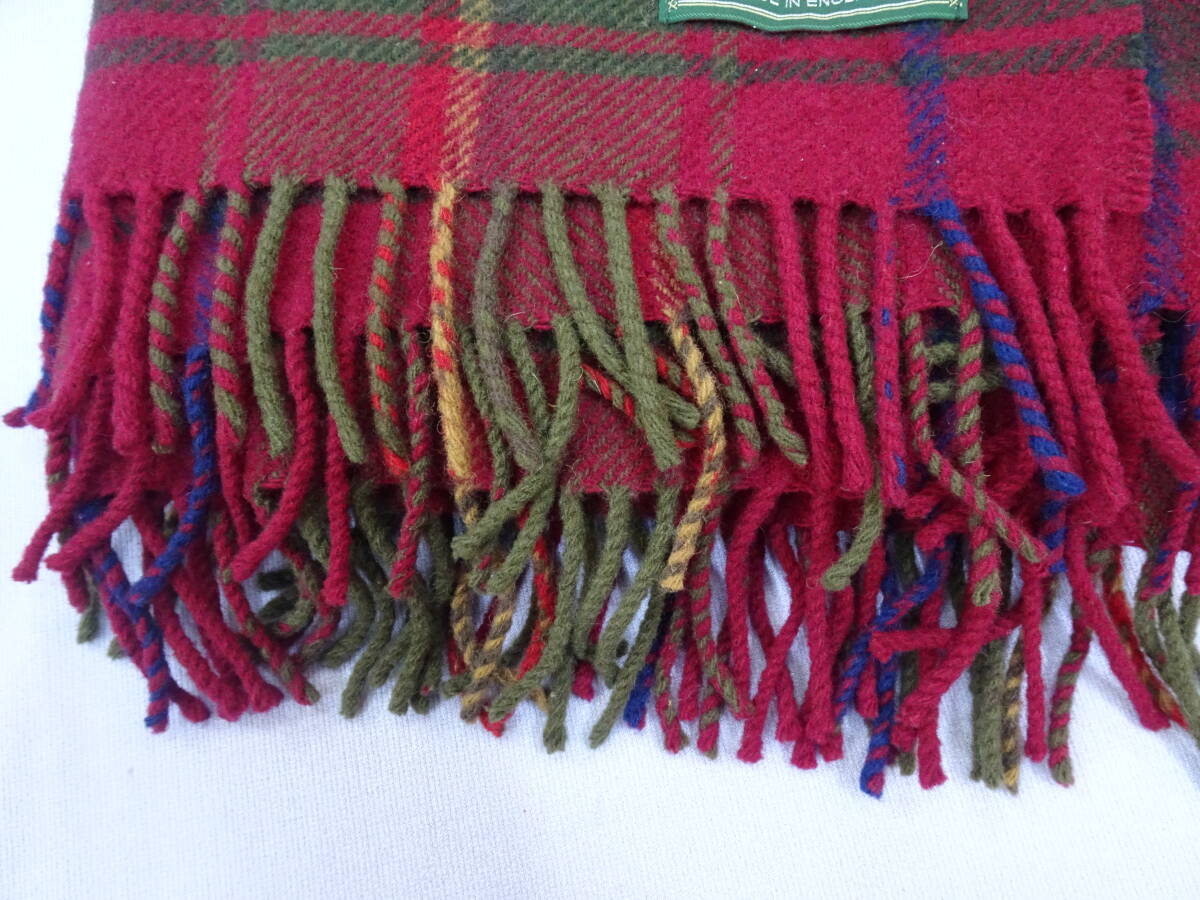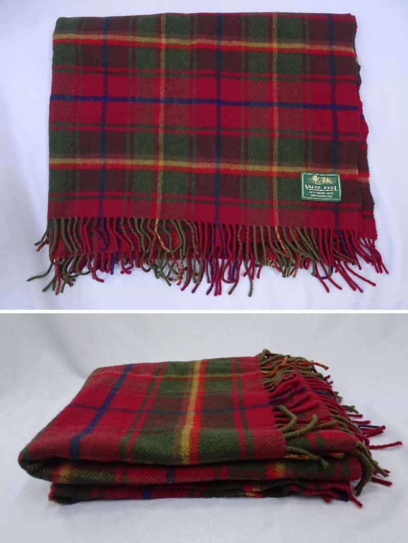 (M-1133) LOFTY VALUE FEEL ひざ掛け ブランケット ウール100% 大判 約144×123㎝ チェック柄 レッド 秋冬物 防寒 あったか アイテム 中古