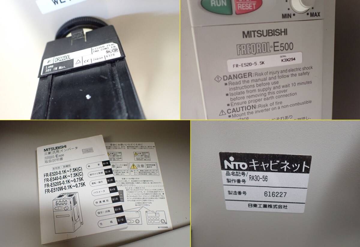 F-155★制御盤★三菱インバータ FREQROL E500★FR-E520-5.5K★日東工業 キャビネット RA30-56★中古品