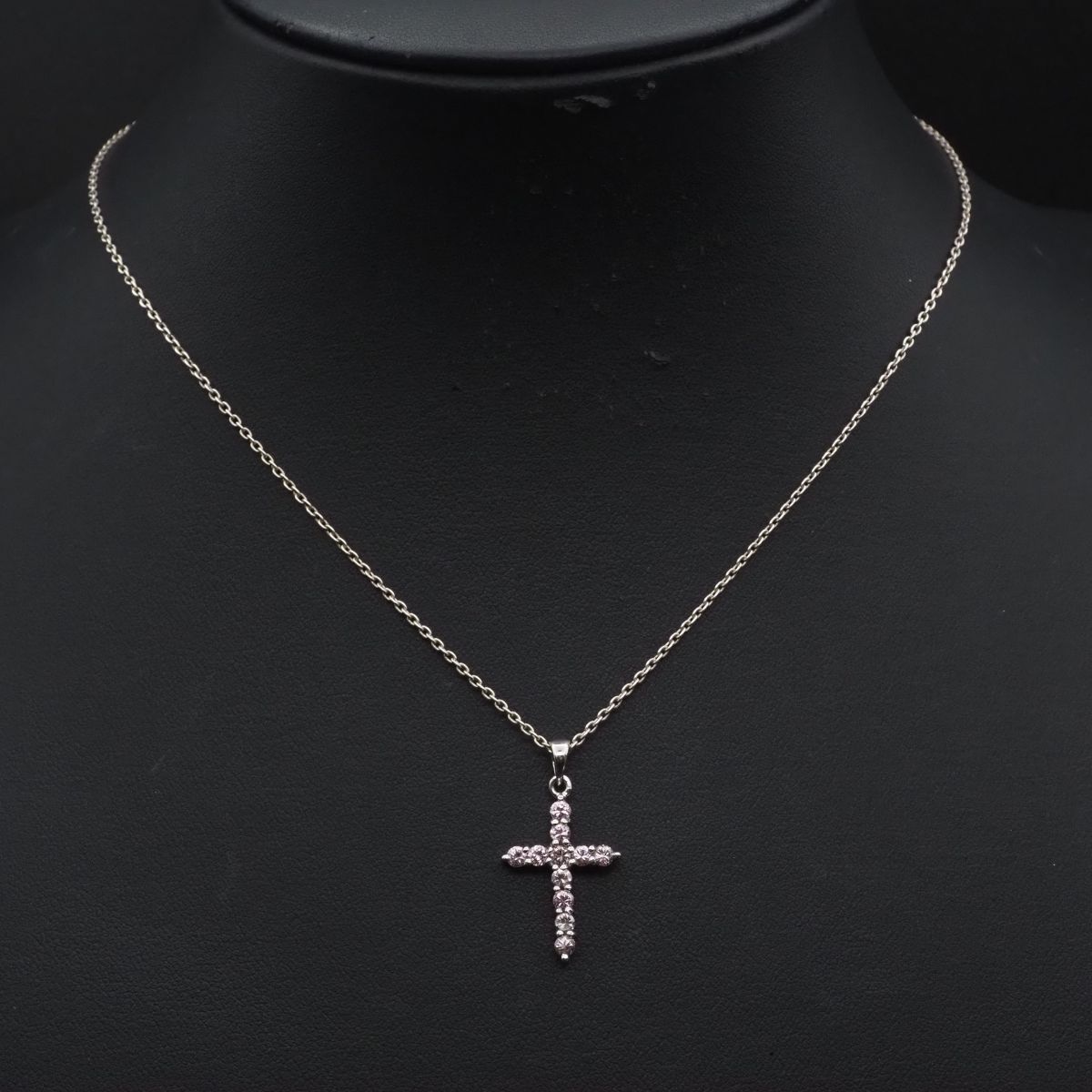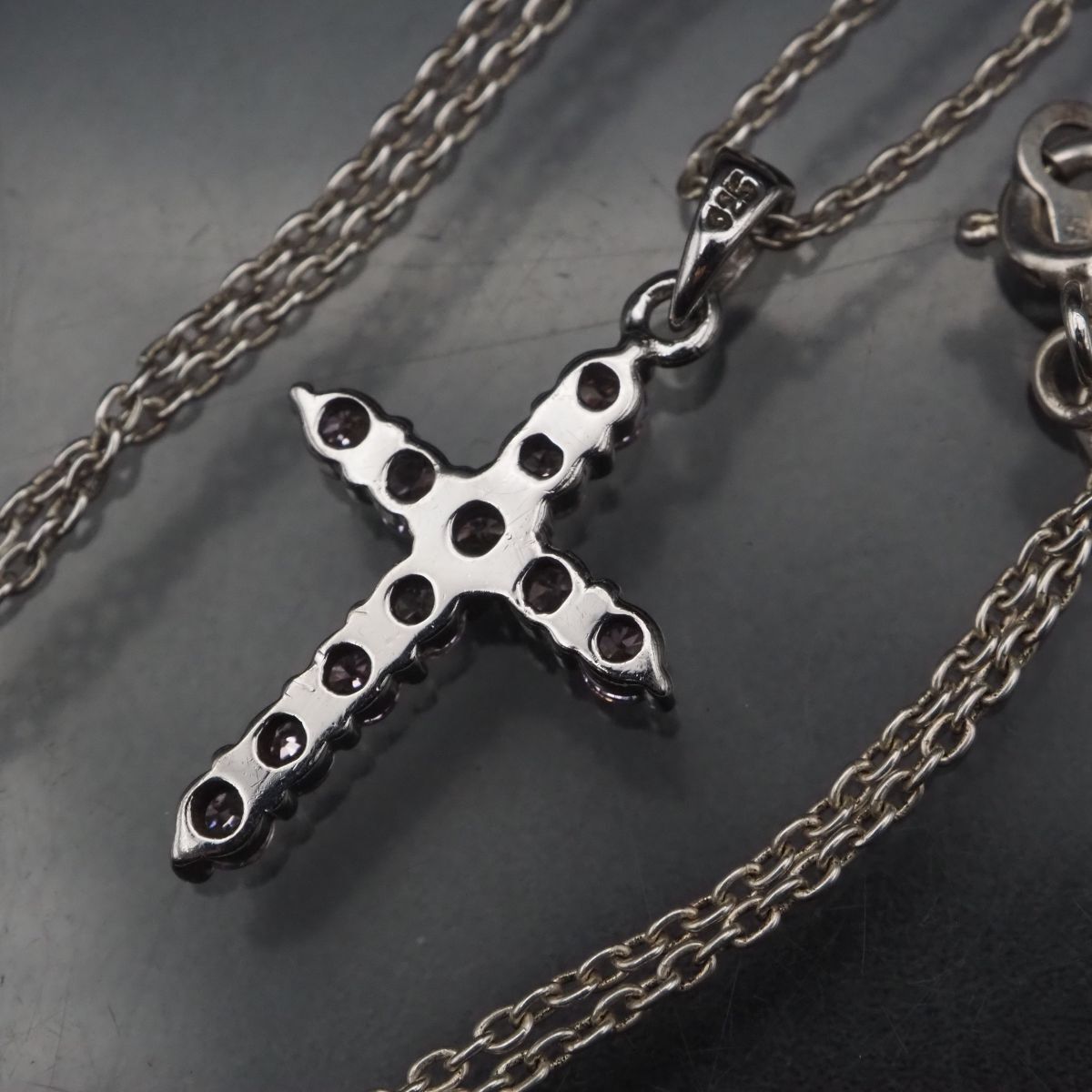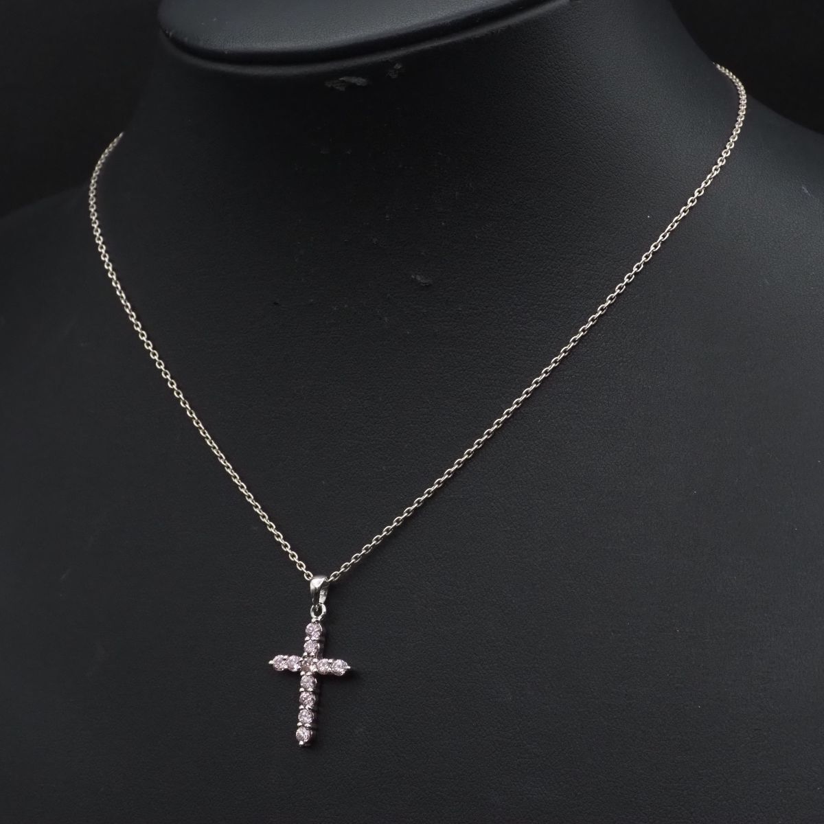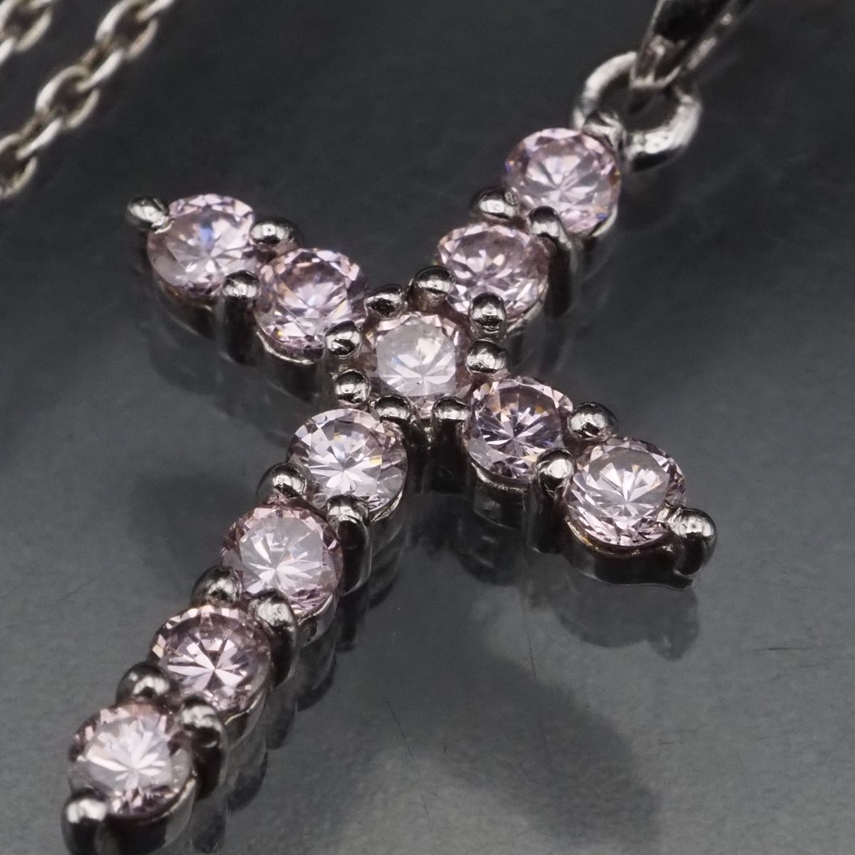 H843 ピンクストーン SILVER925刻印 ペンダント ネックレス クロス デザイン シルバー