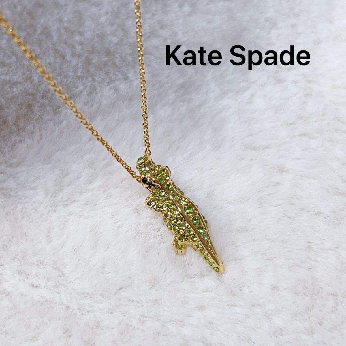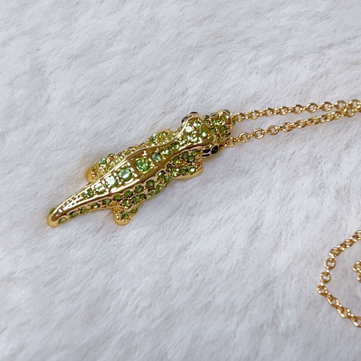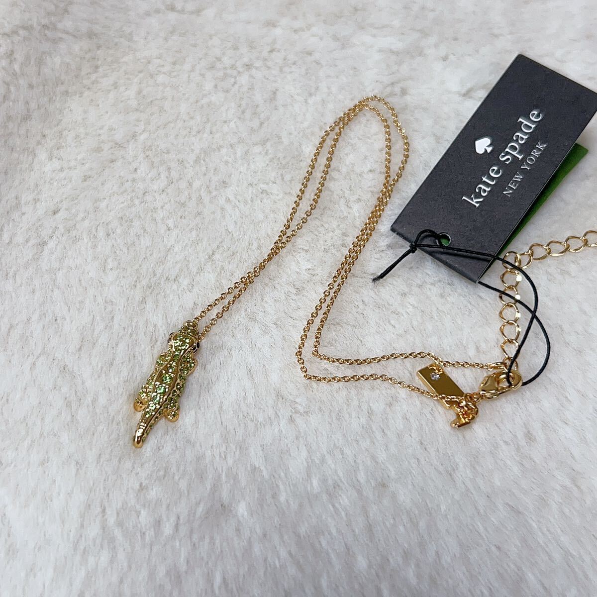ライトグリーンのストーンがきらっと輝く、kate spadeのワニモチーフネックレスです。