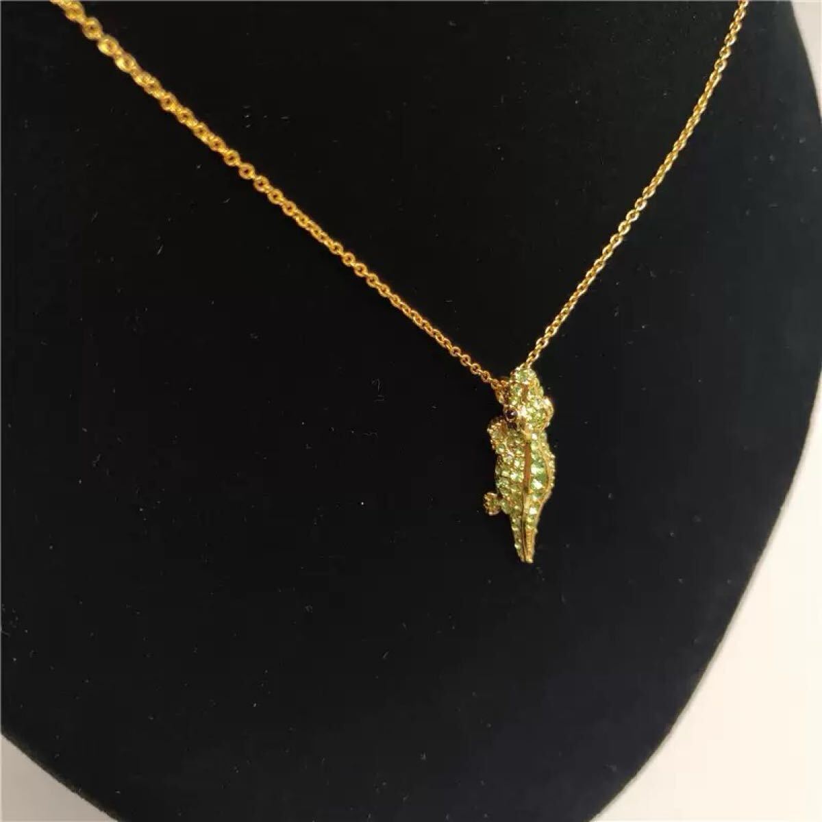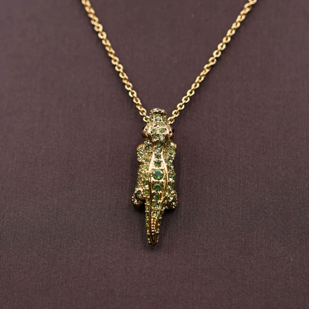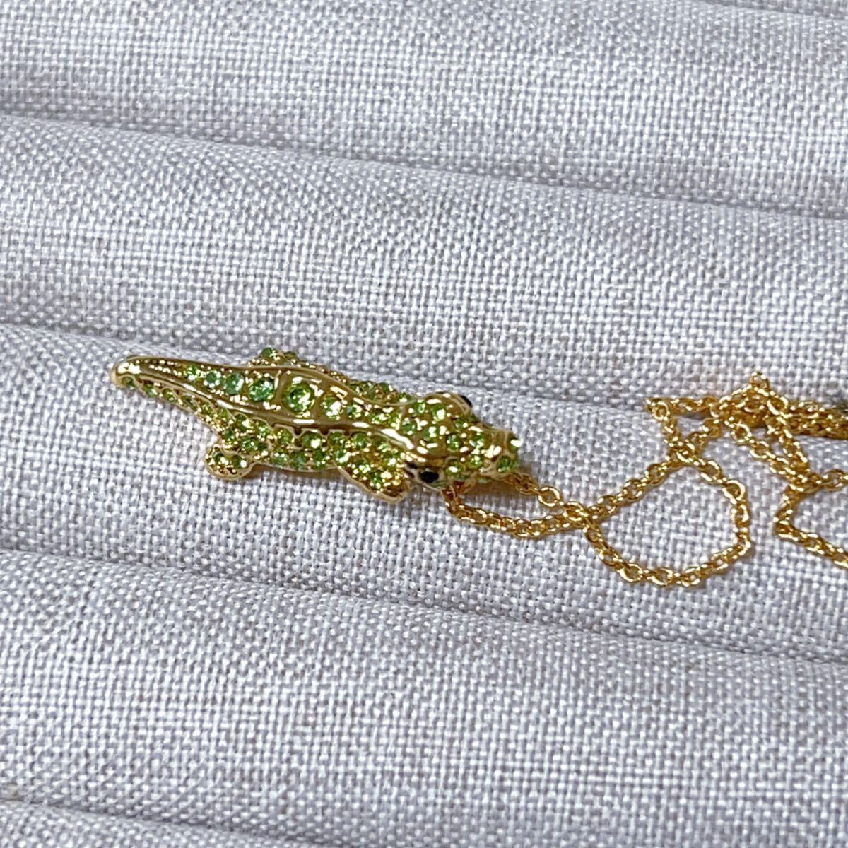 ライトグリーンのストーンがきらっと輝く、kate spadeのワニモチーフネックレスです。