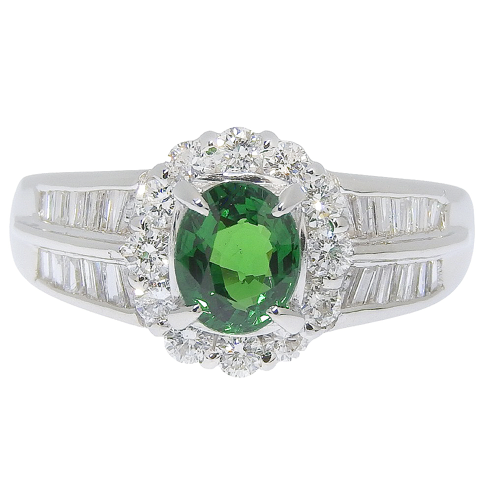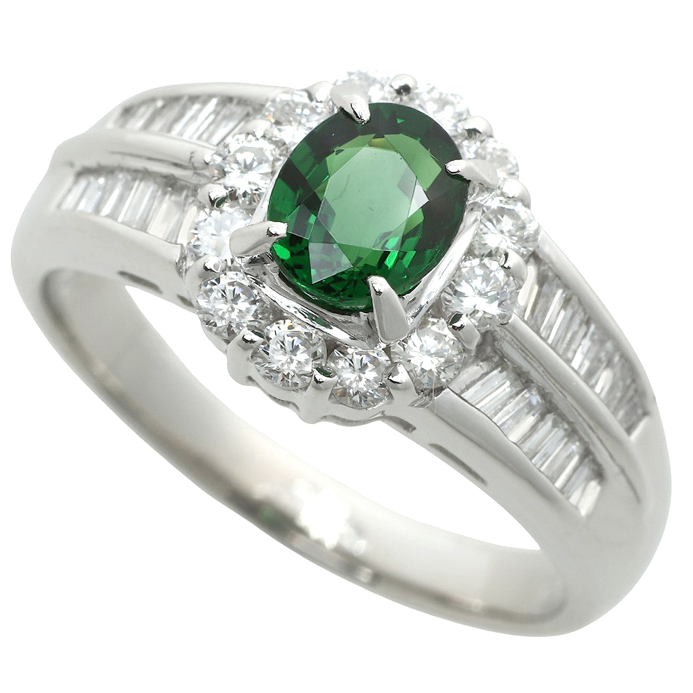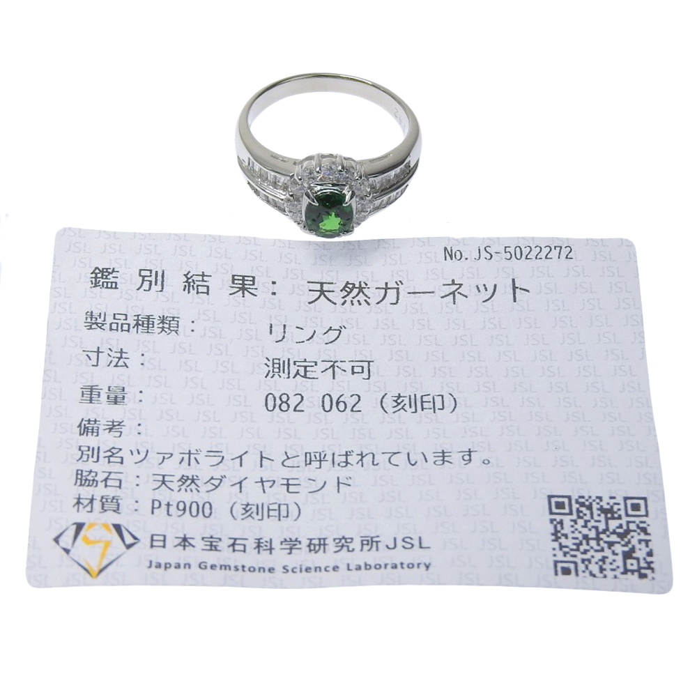 Pt900 石:ガーネット(ツァボライト)0.62ct メレダイヤモンド0.82ct