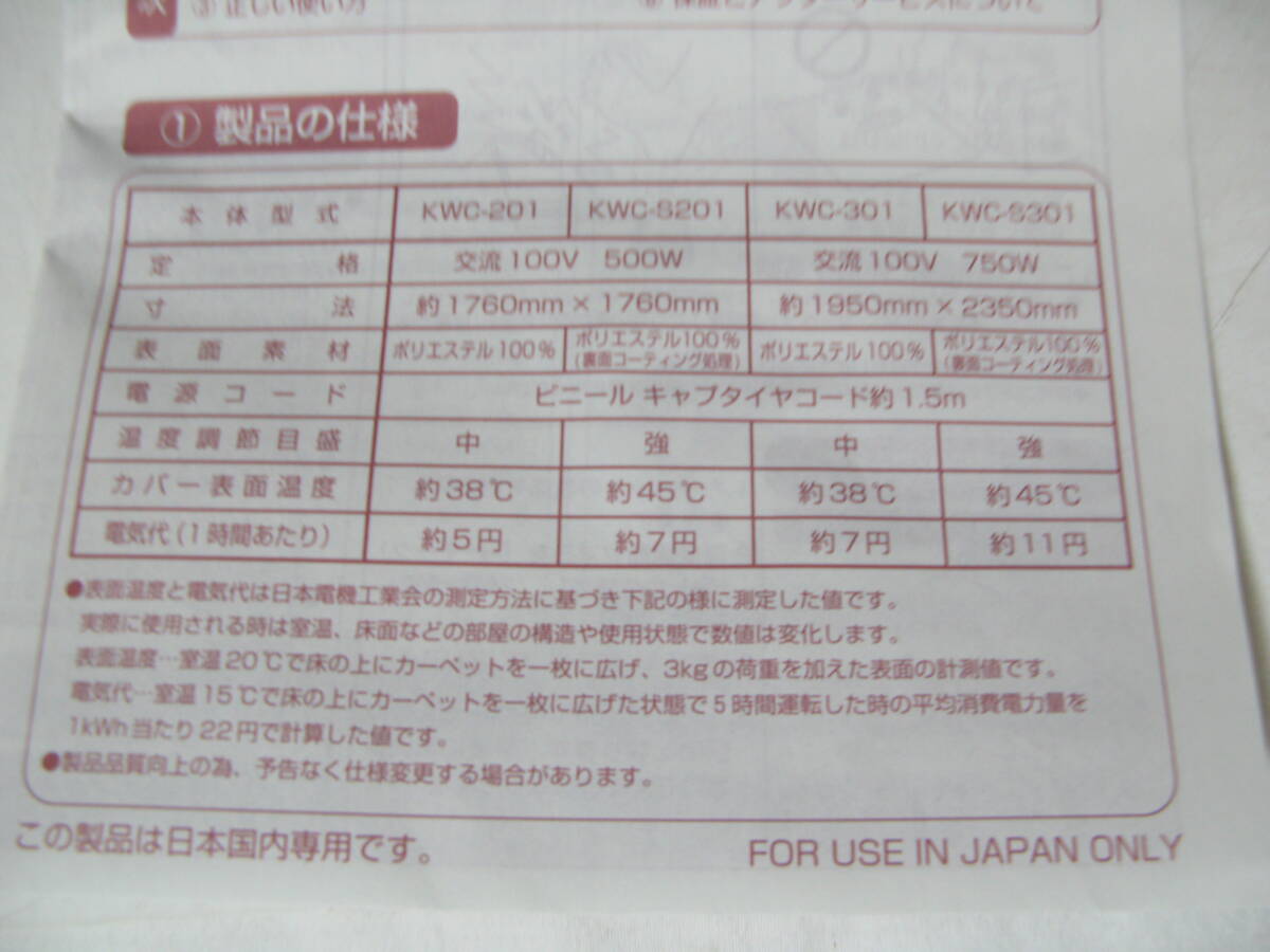 □ KODEN 電気カーペット KWC-201 2畳タイプ ホットカーペット 家電 暖房器具 ☆☆