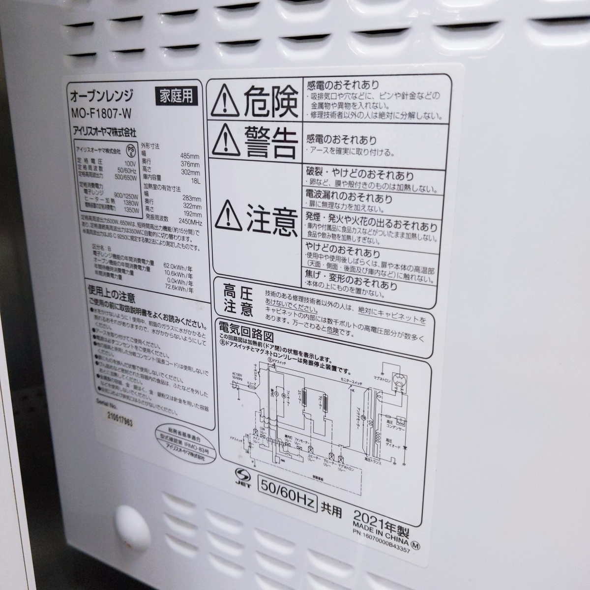 【中古品】アイリスオーヤマ 18L オーブンレンジ 2021年製 MO-F1807-W〇YR-53316〇 の出品です。