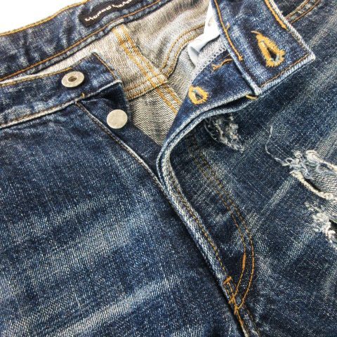 ラウンジリザード LOUNGE LIZARD デニムパンツ ジーンズ ストレート ボタンフライ ダメージ加工 紺 ネイビー /MN7 ■GY01 メンズ