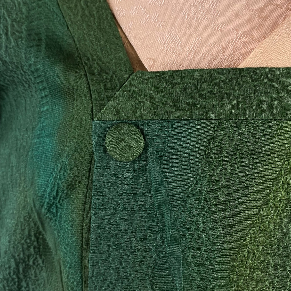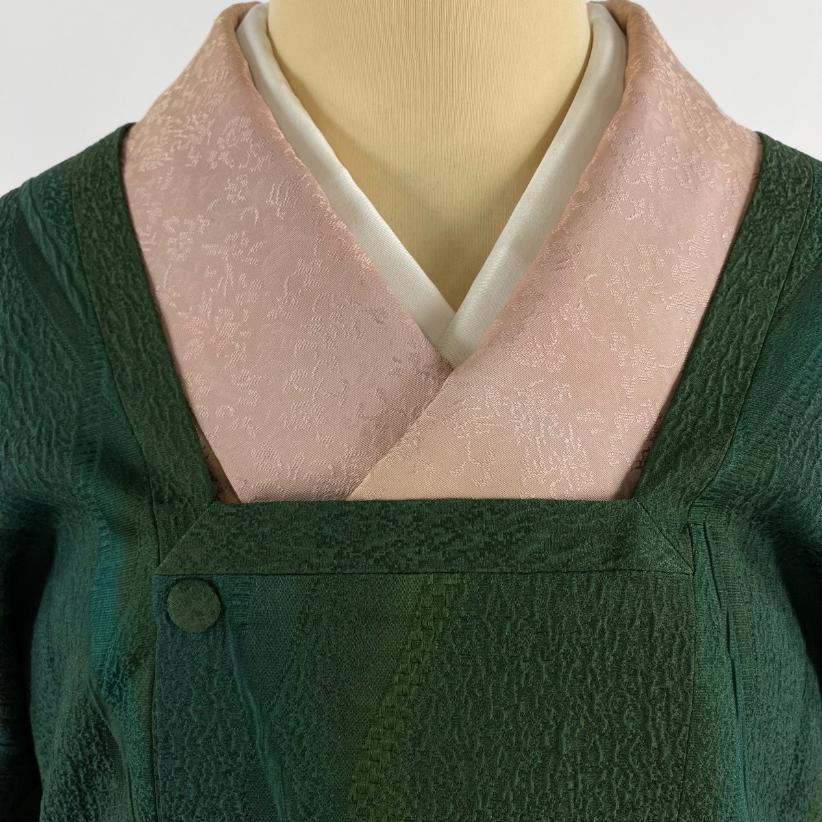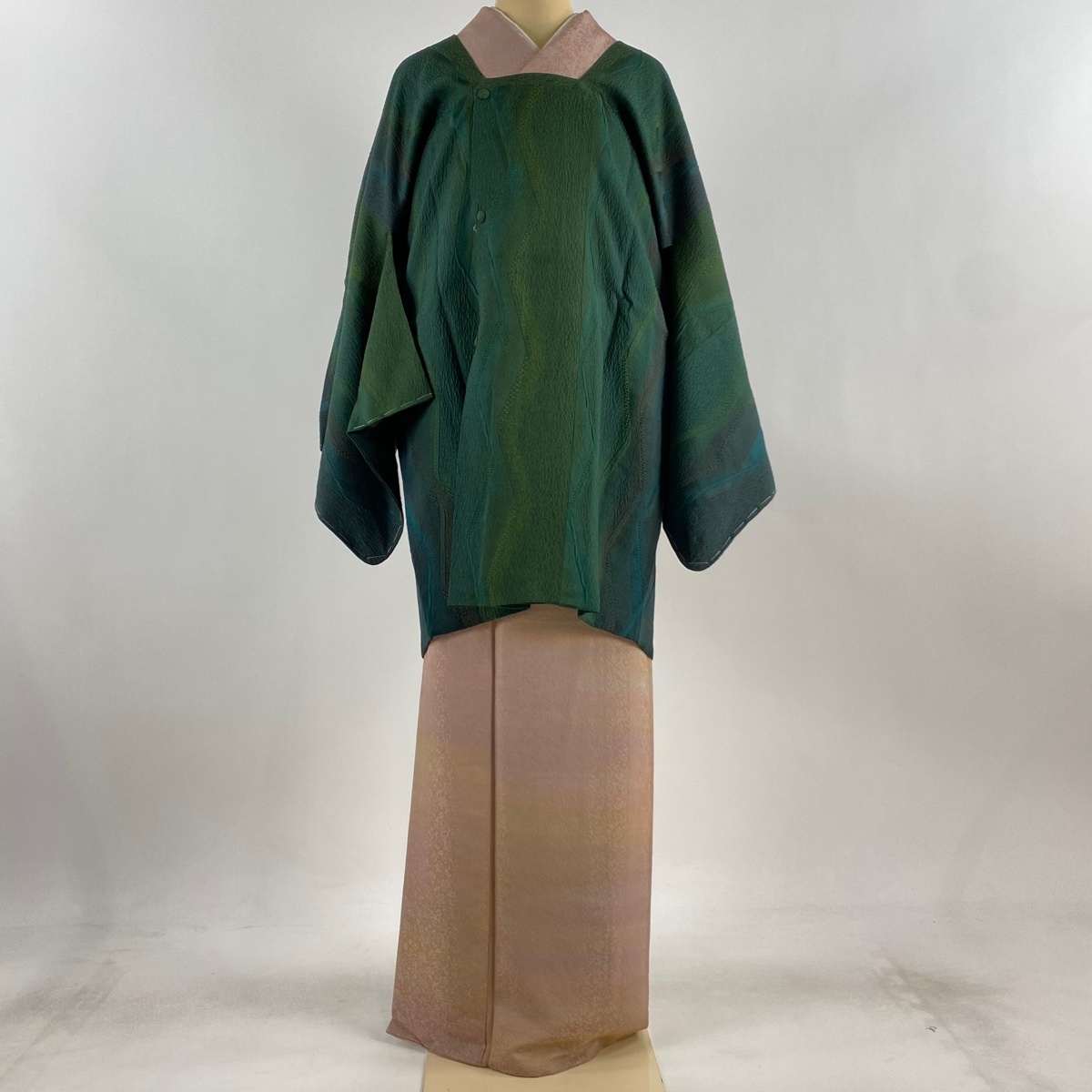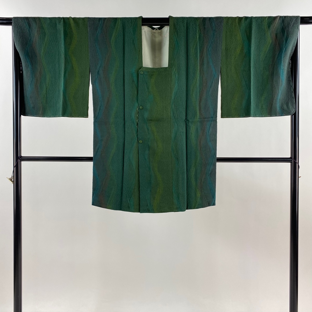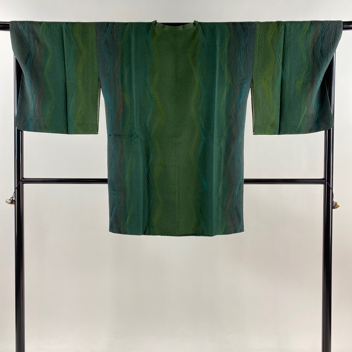 | 道行 美品 秀品 落款 泥染 和装コート 角衿 やまと 地紋 ぼかし 深緑 身丈89 裄丈68.5 L 正絹 【中古】 |