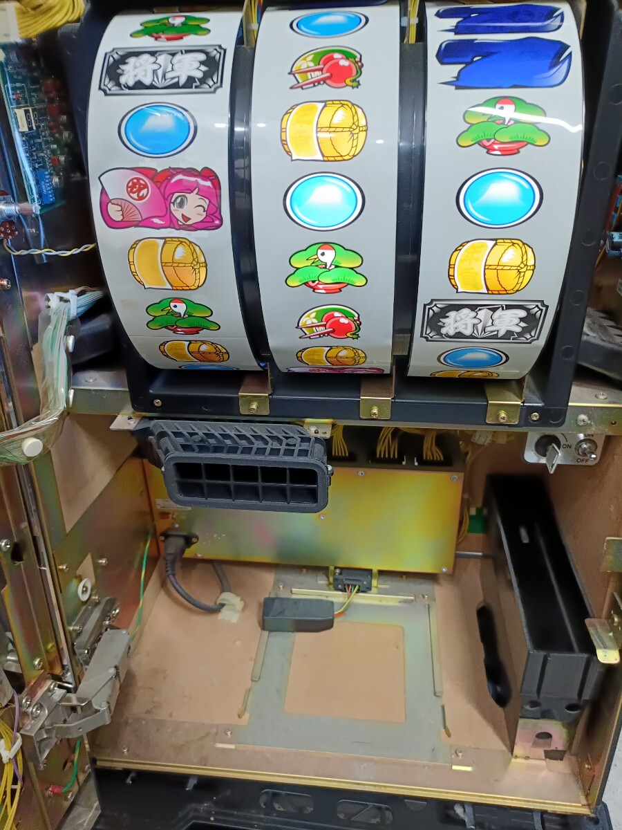通電、音が出てリールが回転、ボタンを押すと3つ各リールが停止しました。