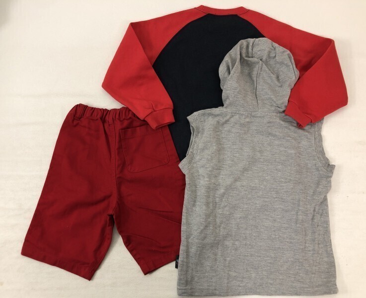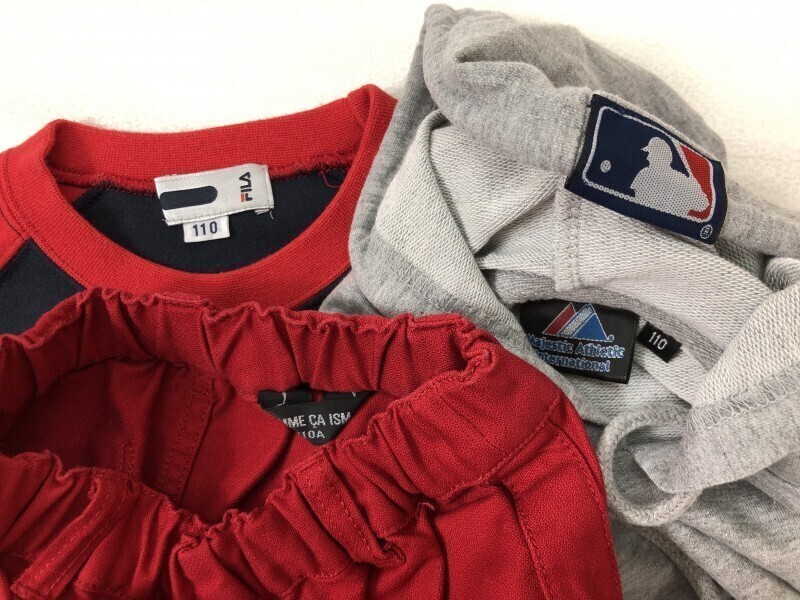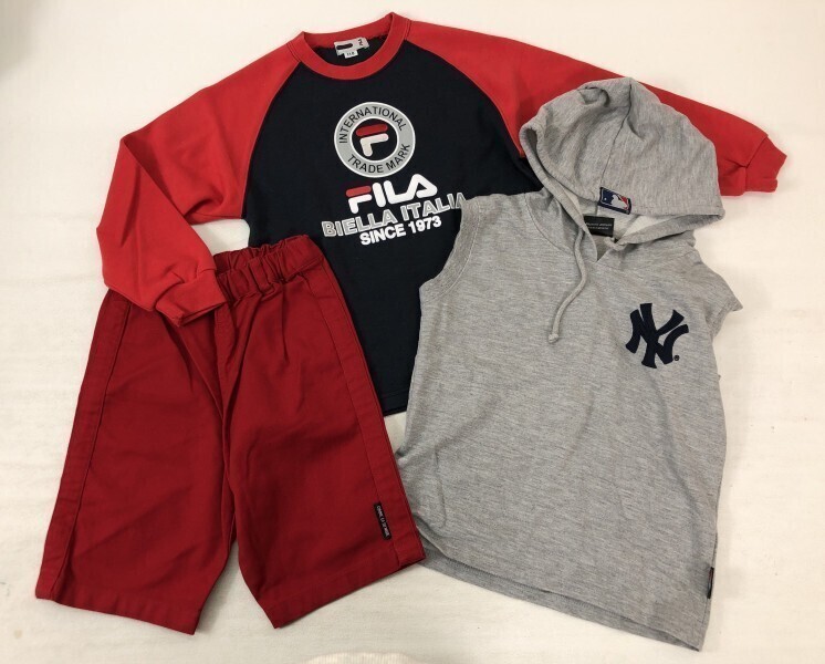 キッズ 子供服 男の子 サイズ110 トレーナー パンツ ノースリーブパーカー 3点セット まとめ売り 卸し フリマ 福袋 フィラ FILA MLB です。