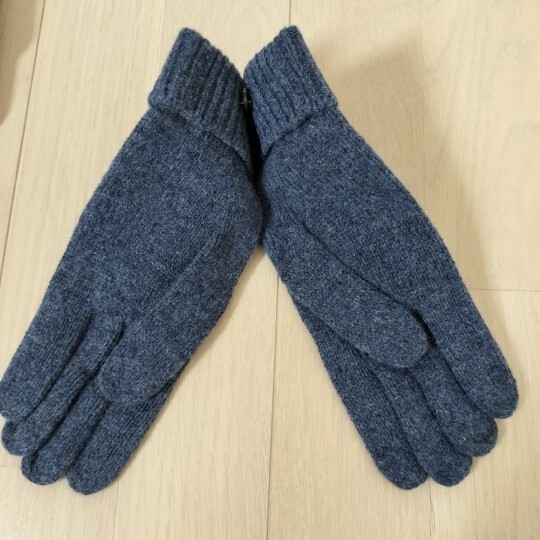 ニット手袋 グローブ レディース 暖かい おしゃれ オシャレ 5本指 シンプル(ネイビー、サイズ21〜22)