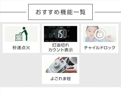 低消費電力、秒速点火、低燃費で灯油も長持ち。使いやすさを実感。