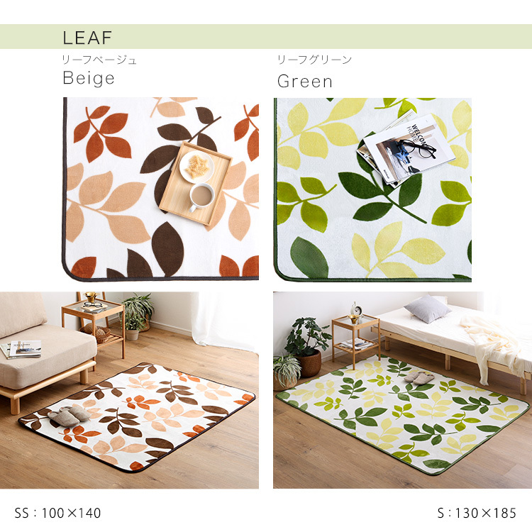 マイクロファイバー・デザインラグマットSサイズ(130×185cm)洗えるラグマット WASHFA2 ハッパベージュ