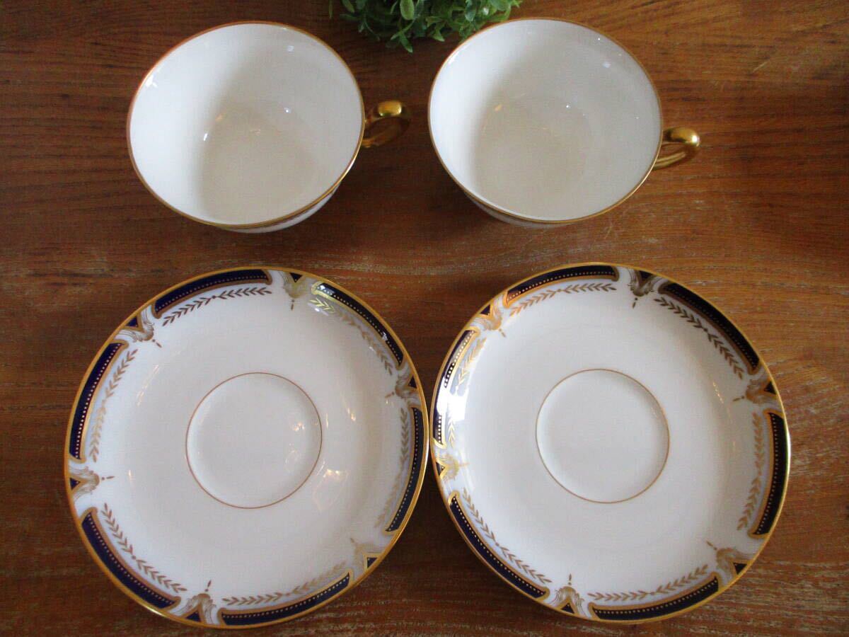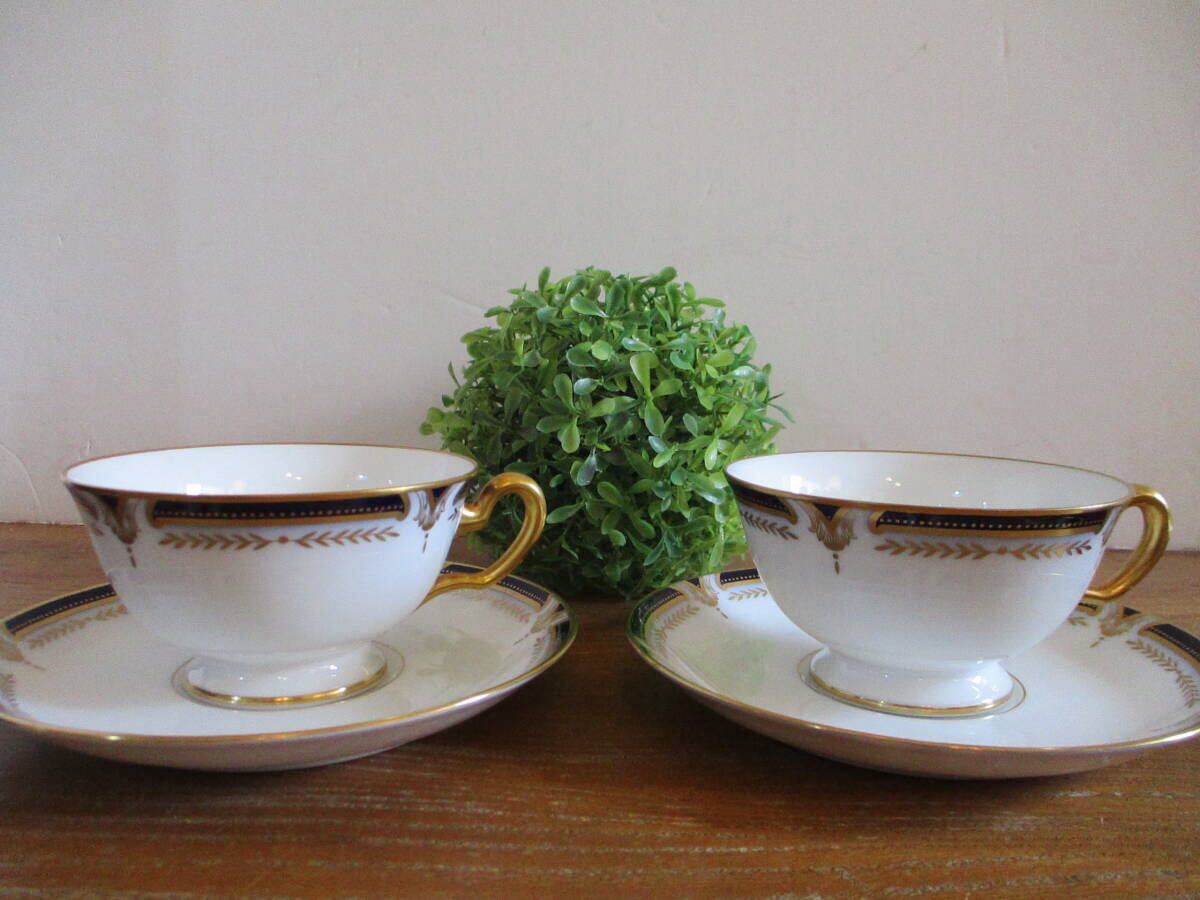 【美品】皇室御用達 大倉陶園 OKURA JAPAN 瑠璃金彩 ペア カップ&ソーサー 2客セット 人気 ブランド 洋食器 金彩 金縁 白磁 C&S 茶器 | |||