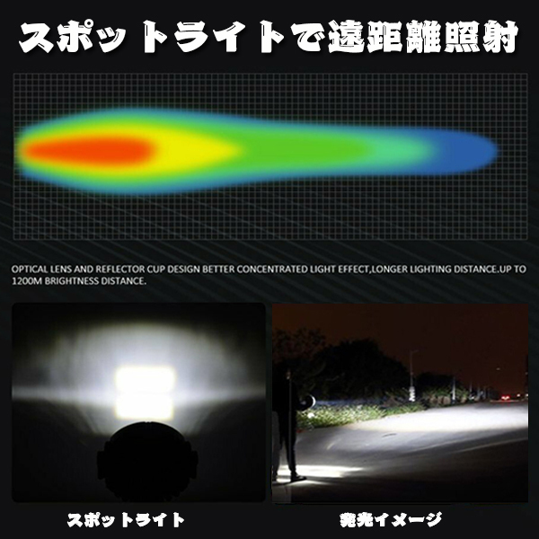 ....【超高輝度】7インチLEDワークライト:高品質LEDチップを採用して色温度6500K、8000LMの超高輝度な昼光色を提供しています、汎用コンパクトLED作業灯。室内にも屋外や現場作業にも便利です。
