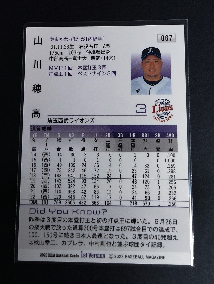 2023年BBM 1st 山川穂高(西武)銀箔サイン入り。No,067。