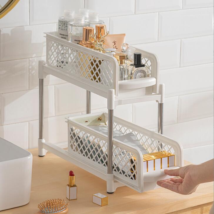 人気シンク下 収納 引き出し スライド収納 スライドラック 2段ラック 収納棚 入れやすい 組立式 流し台下 洗面台下 整理 ラック ホワイト