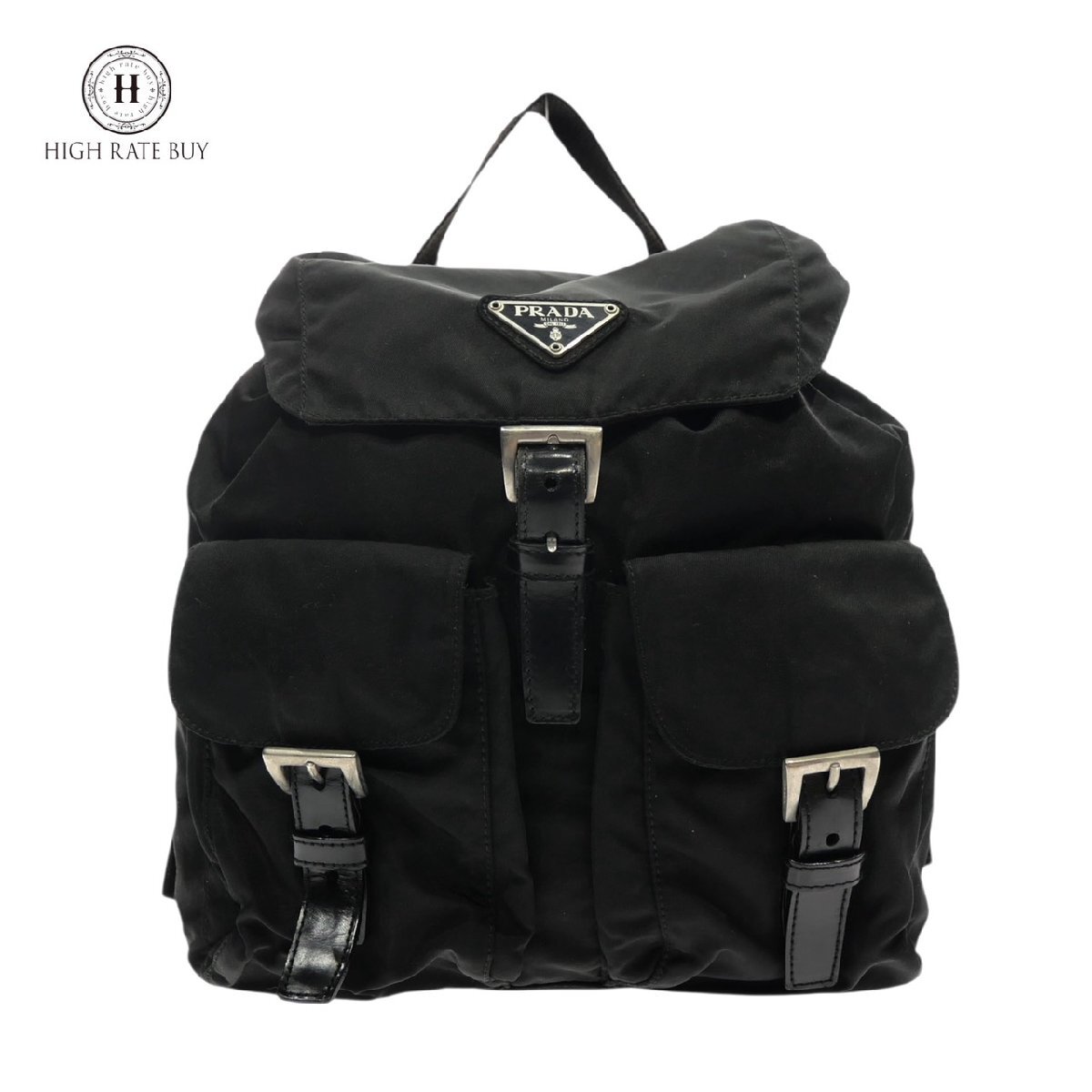 1円スタート PRADA プラダ ナイロン リュック 巾着型 三角ロゴプレート シルバー金具 バックパック デイパック ネロ ブラック レディース