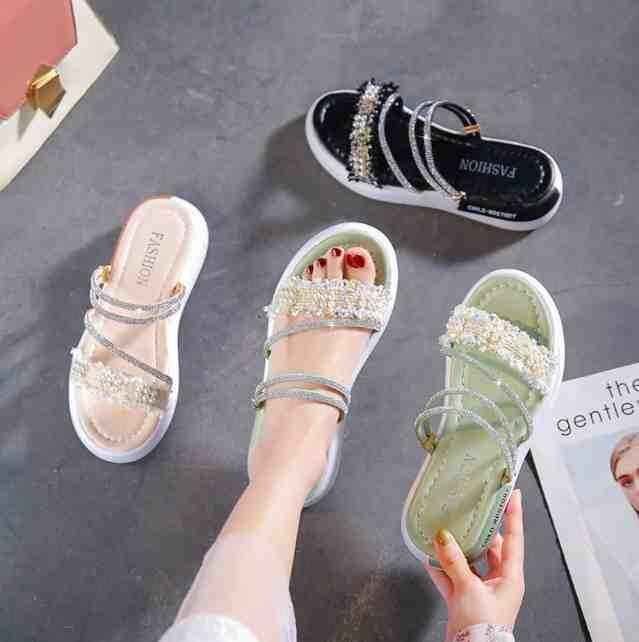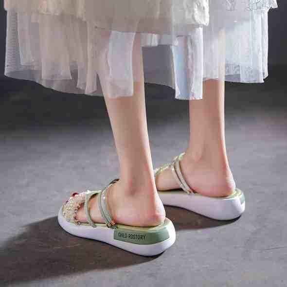 ・パールビーズが綺麗に装飾されたストラップサンダル。