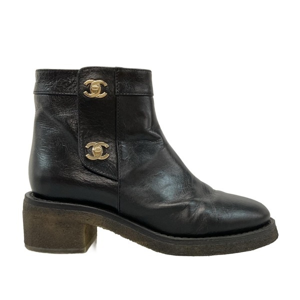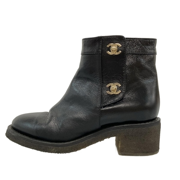 シャネル CHANEL ショートブーツ 35 1/2 C G31204 - レザー 黒 レディース シルバー金具/ココマーク/ターンロック 靴