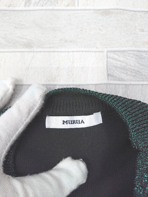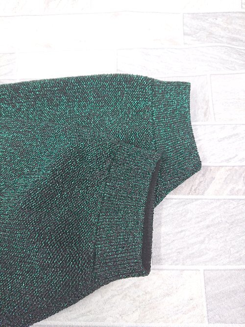 ◇ ⊇ MURUA ムルーア グリッター 五分袖 ニット プルオーバー サイズF グリーン レディース E