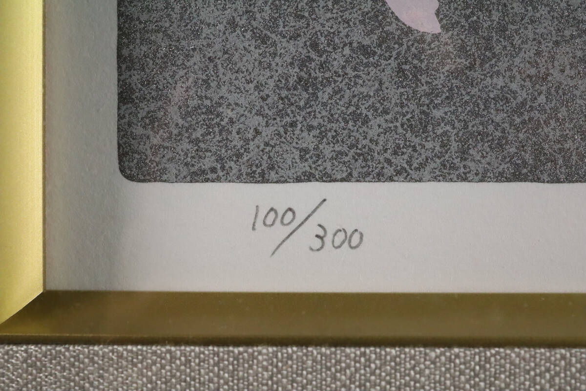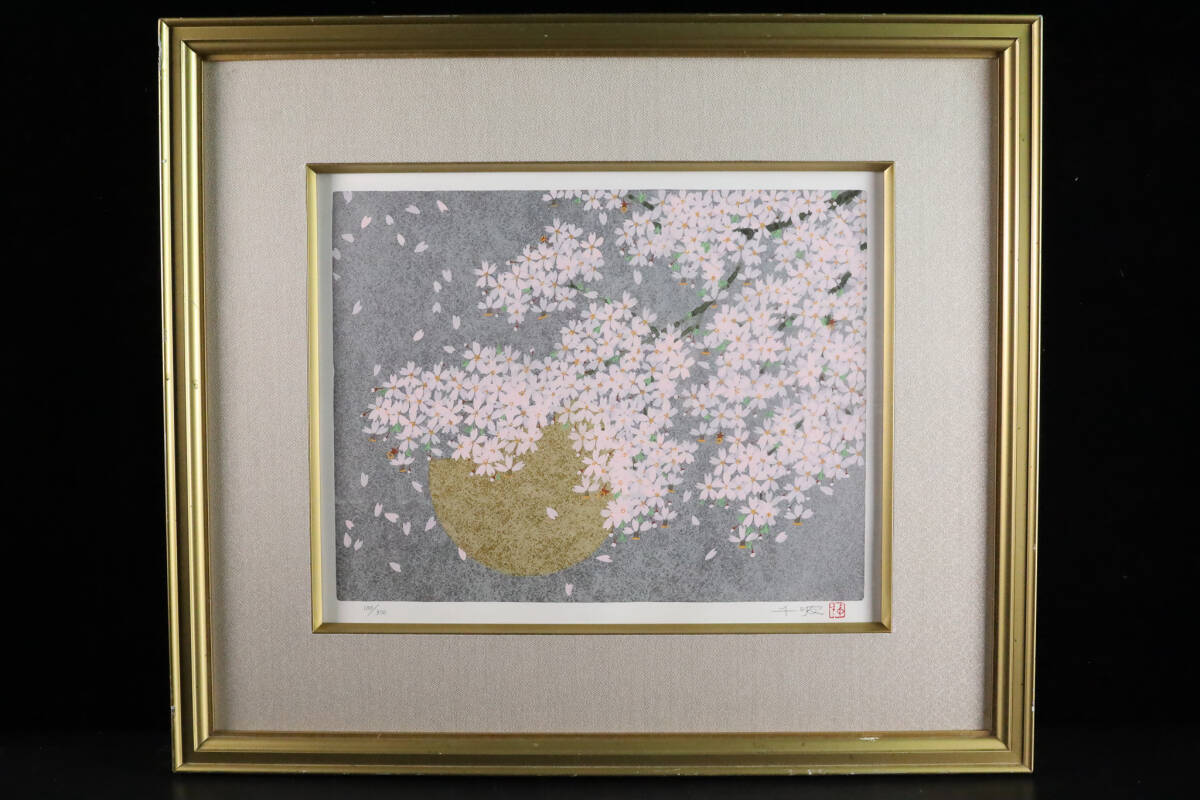 ◇雅◇ 真作 中島千波 「桜花月明」 シルクスクリーン 直筆サイン 限定300部 エディション 100/300 証明シール 額装/RG.25.11[C162.2] PU.2