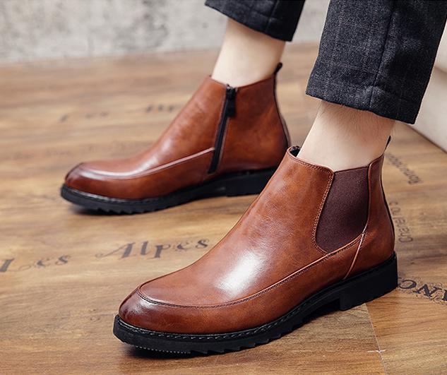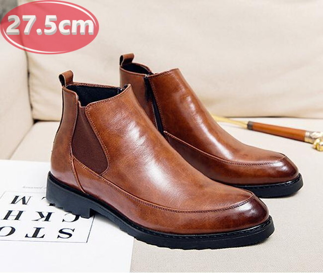 サイドジッパー付き メンズ ビジネス レザー シューズ ブラウン 27.5㎝ 革靴 靴 カジュアル 屈曲性 通勤 軽量 インポート品【n164】