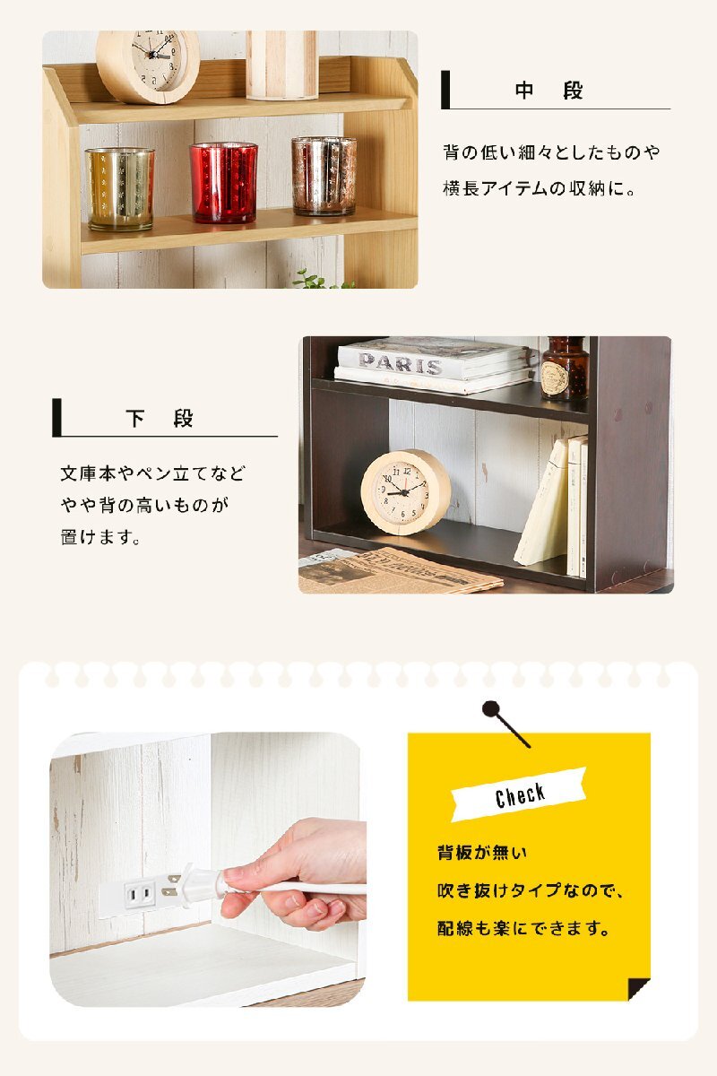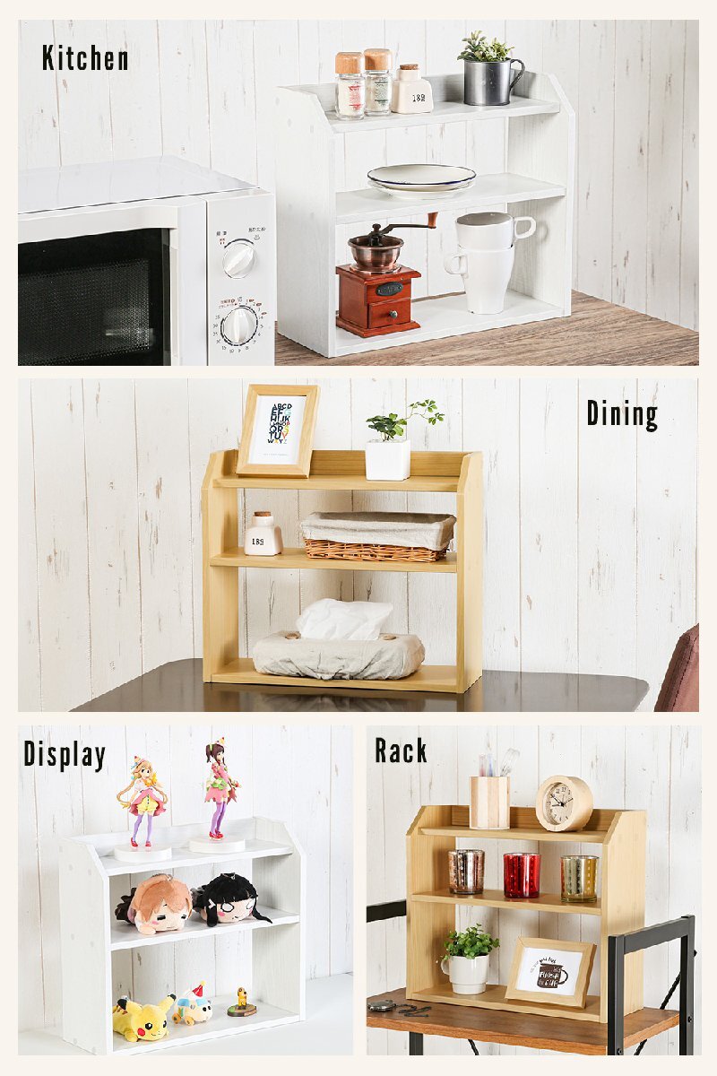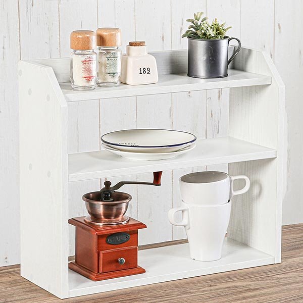 オープンラック 卓上シェルフ 幅42cm 3段ラック ミニサイズ 省スペース 卓上 棚上 木製ラック インテリア コンパクト ホワイト