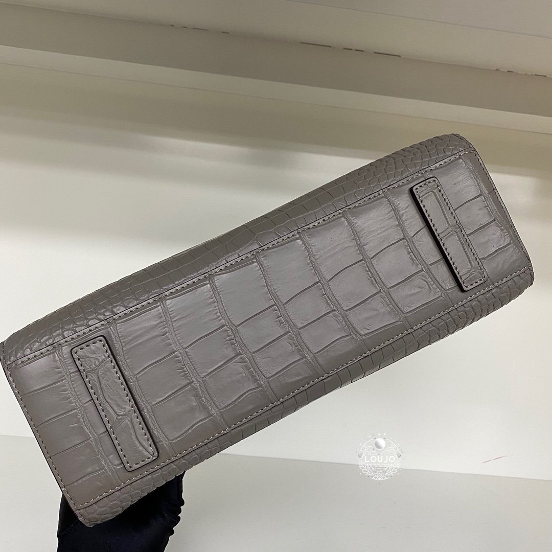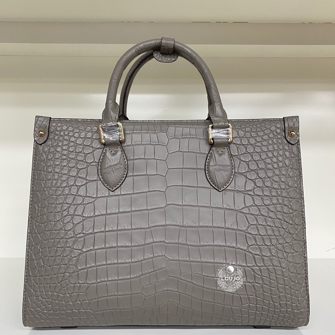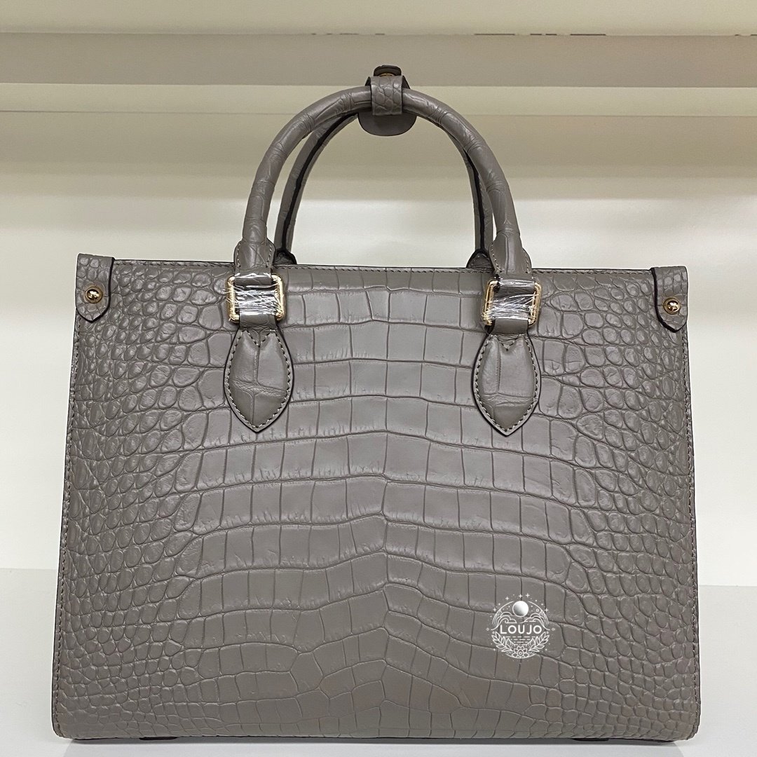 トートバッグ クロコダイルレザー ハンドバッグ センター取り 2WAY 鰐革 本肩掛け 本革 レディースバッグ グレー フォーマルバッグ
