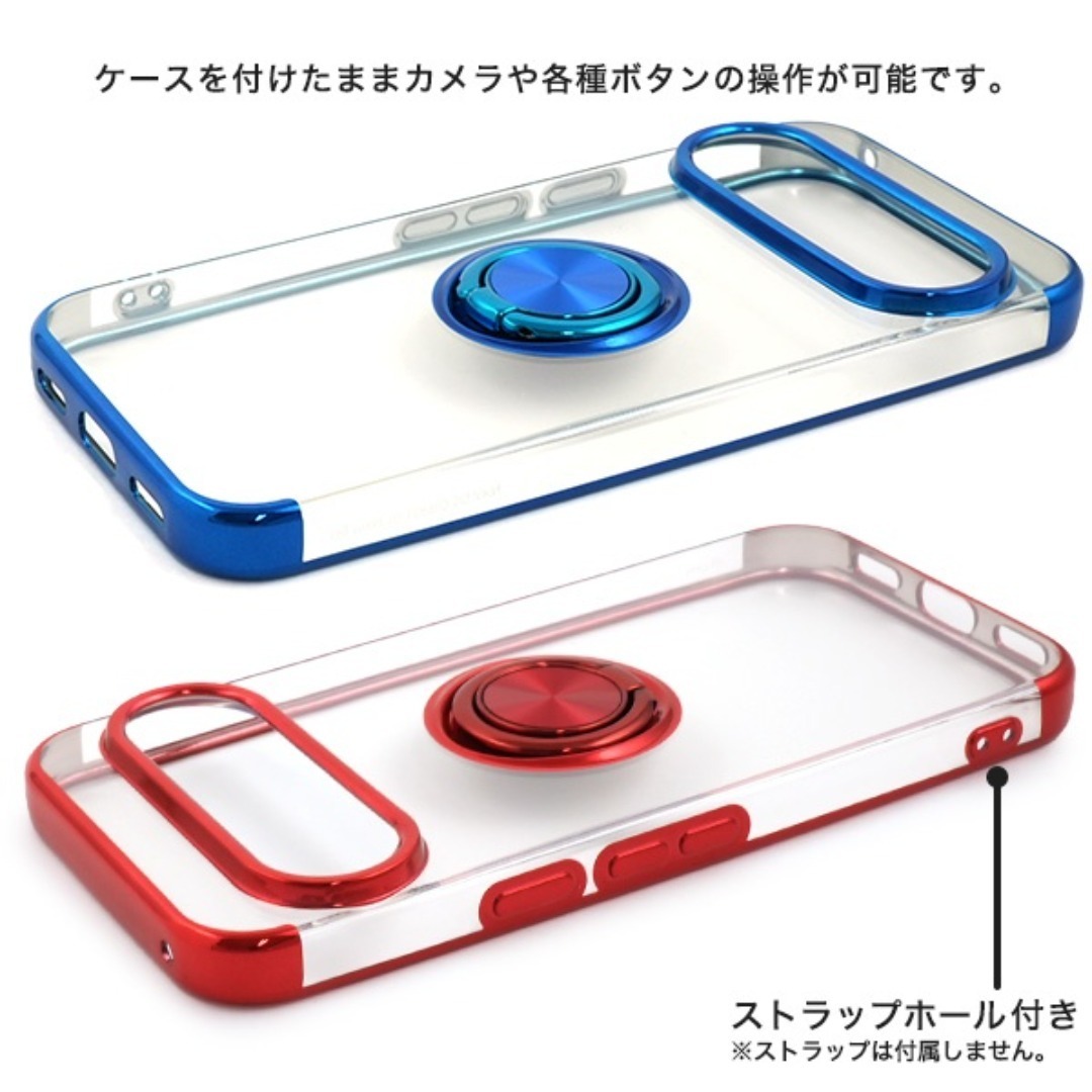 スマホリング付きメタルカラーバンパーソフトクリアケース