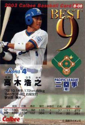 ★トレカ★2003カルビープロ野球チップス第1弾★ベストナインカード【#B08 高木浩之 西武】★
