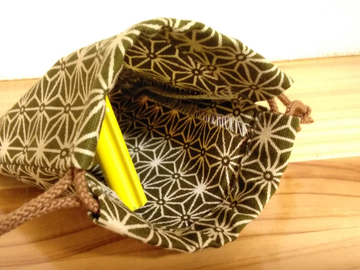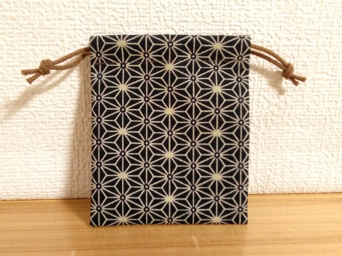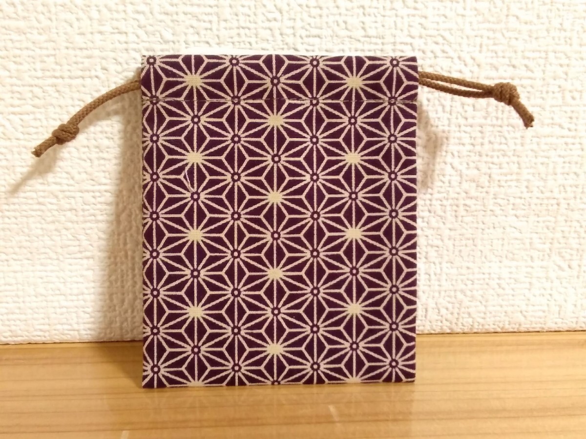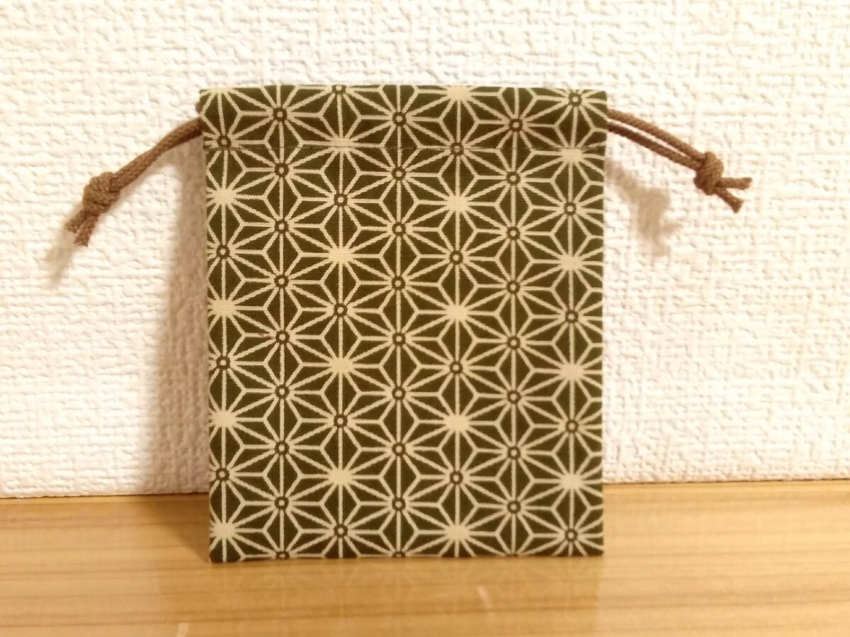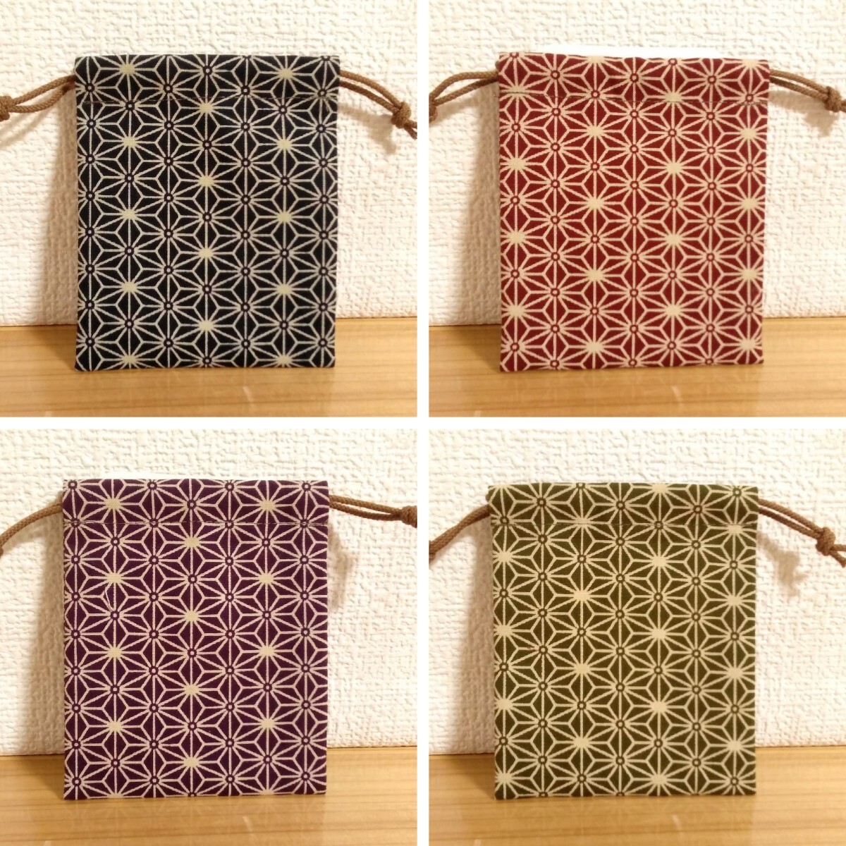 ミニミニ 巾着袋 4個 セット 麻のは模様 ハンドメイド