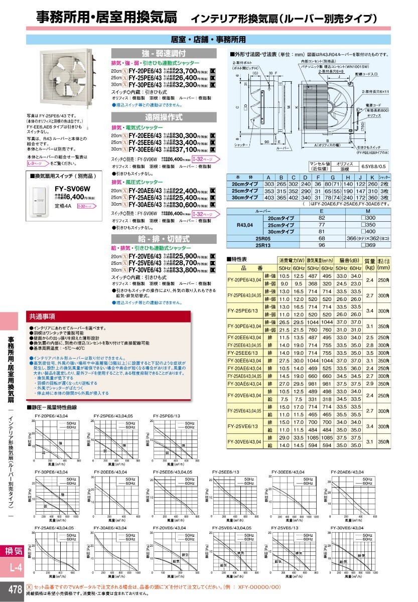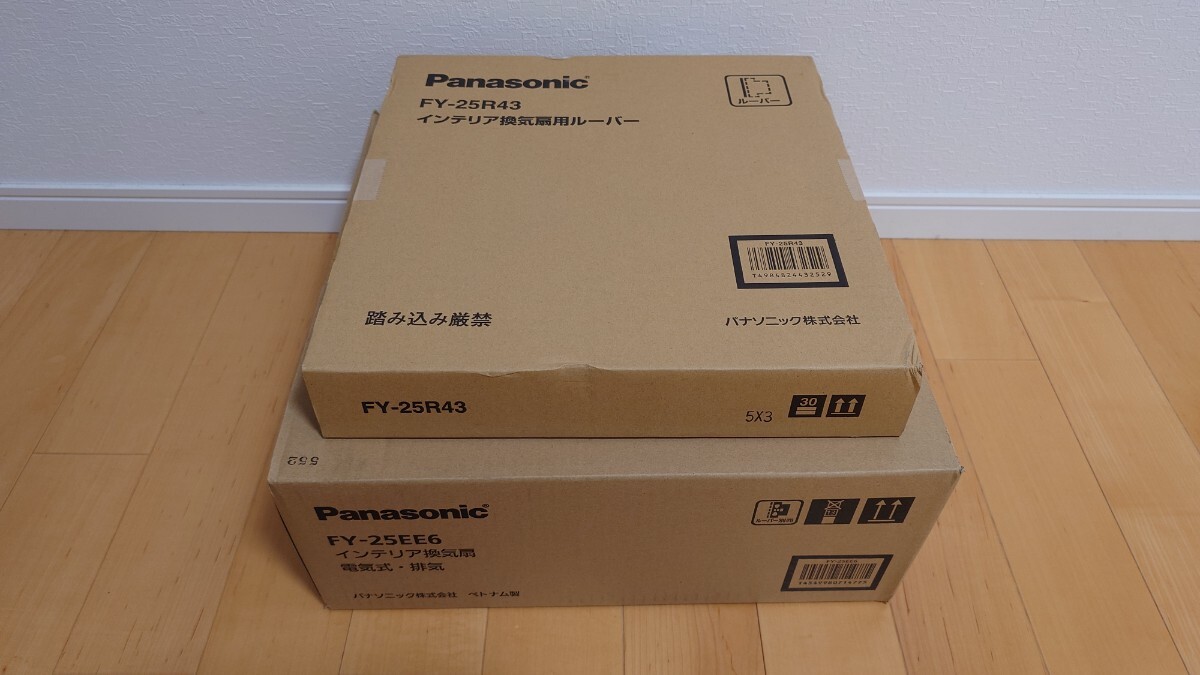Panasonic FY-25R43とFY-25E6のインテリア換気扇、ルーバーセット、事務所・居室用。