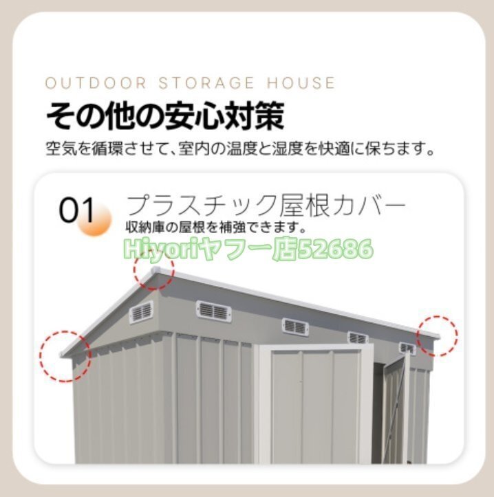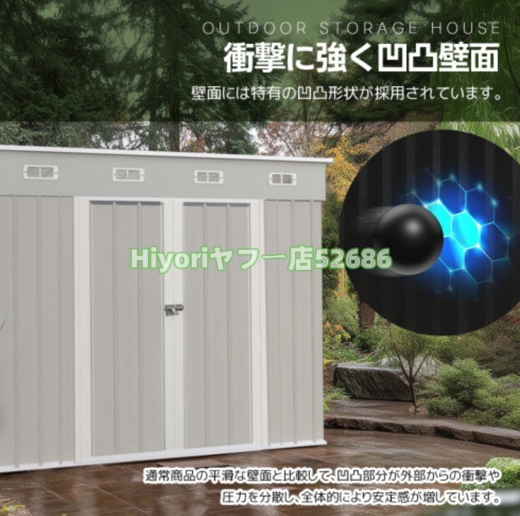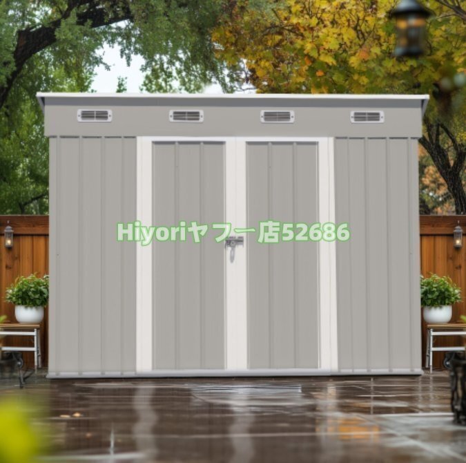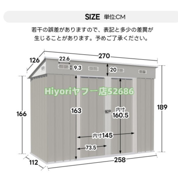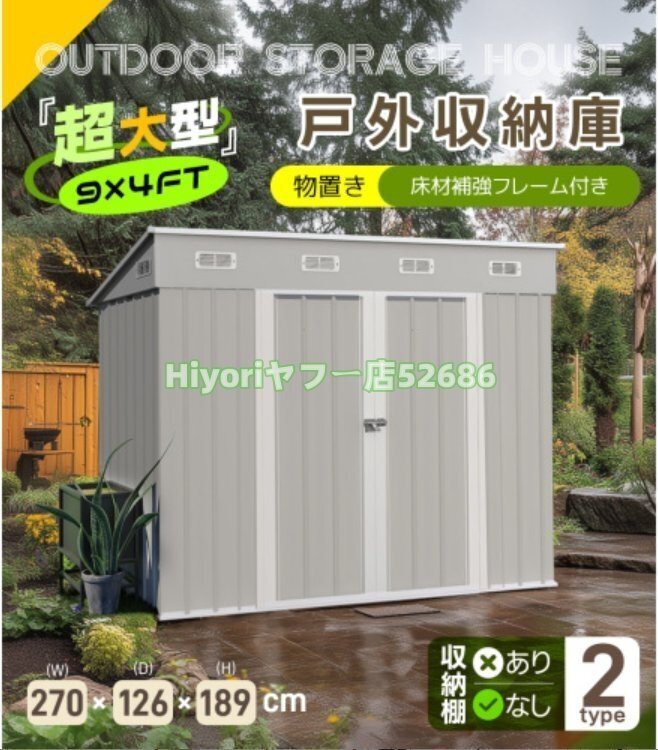強力推薦★ スチール 倉庫 床材補強フレーム付き 戸外収納庫 幅270*奥行き126*高189 物置き おしゃれ 大型 収納庫 屋外物置