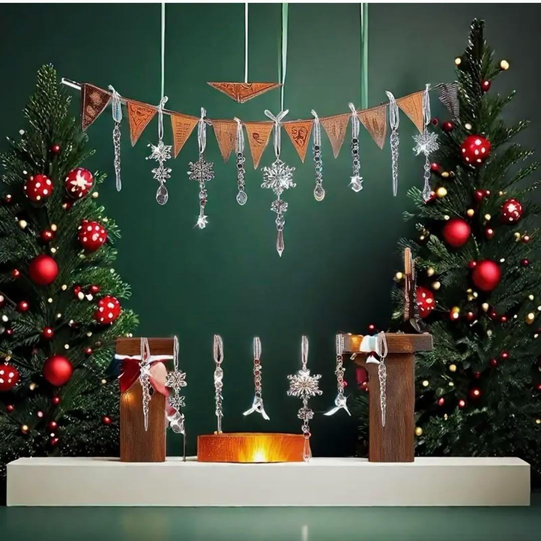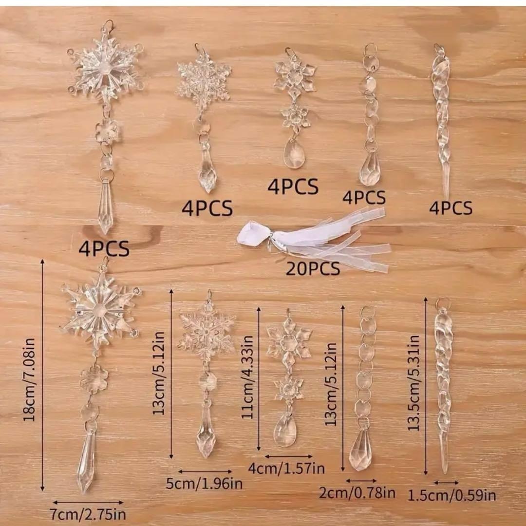 5種類のデザインで、雪の結晶とつららの形を含んでスノーフレークオーナメントに吊り上げ紐が付いています。