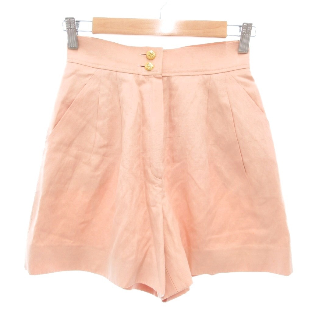シャネル CHANEL ショートパンツ ココマーク 金色 ココボタン シルク リネン混 ピンク 34 XS /AE ■GY18 ☆AA★ レディース
