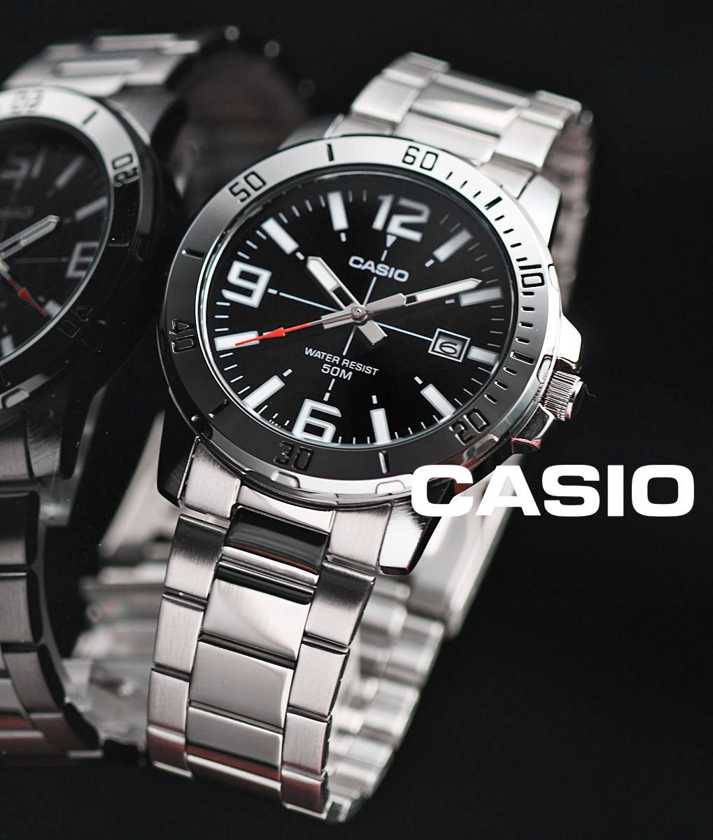 新品 逆輸入カシオ最新作 精悍ブラックメタリック 50m防水 腕時計 未使用 CASIO メンズ 激レア日本未発売
