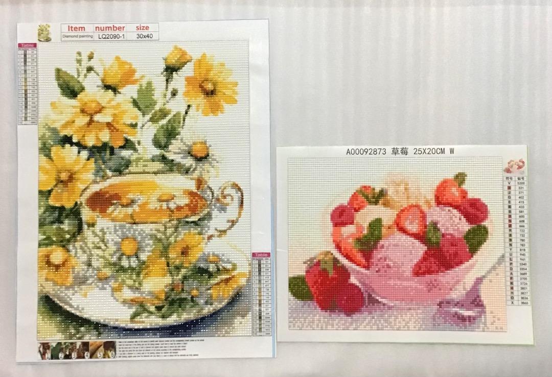 ダイヤモンドアート 完成品 セット⑱ スイーツ 苺 紅茶 カフェ 花 フード フラワー ハンドメイド ダイヤモンドペイント