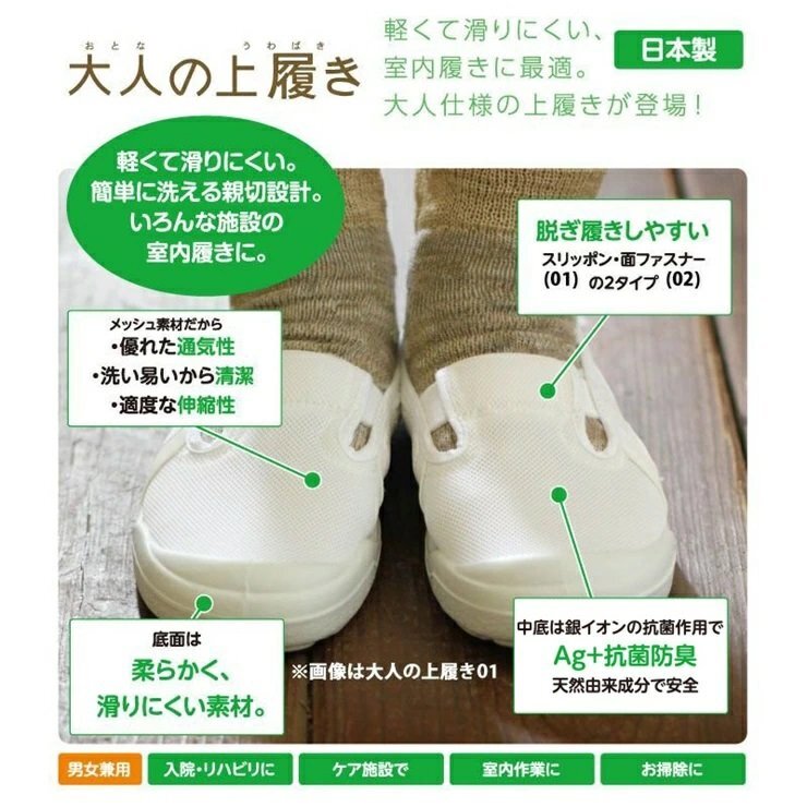 | MS大人の上履き01に新色が登場。 甲ゴムバンドスリッポンタイプでゆったり履く事ができ、脱ぎ履きもらくちん。 軽量でクッション性が良いソールは長時間の立ち仕事をサポートします。 重量は23.0cmで片足約165gです。安心の日本製です。 【ベステック】ウレタンの劣化しやすい弱点を大きく改善した素材で、軽量性・弾力性・防滑性に富んだソールです。 【Ag+抗菌防臭】銀イオンの抗菌作用でにおいのもととなる菌の増殖を抑制し、防臭効果を発揮します。天然由来成分で安全です。 【軽量設計】軽くなるような工夫を施した設計です。 | |