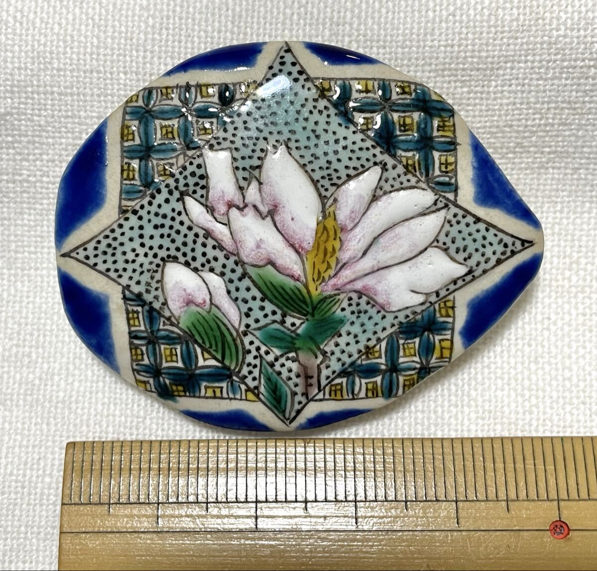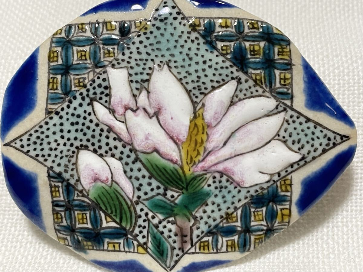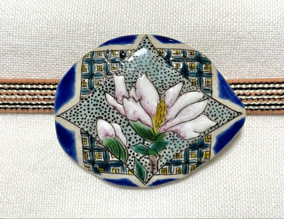 陶器・九谷焼のアクセサリーを帯留めにリメイクしました。