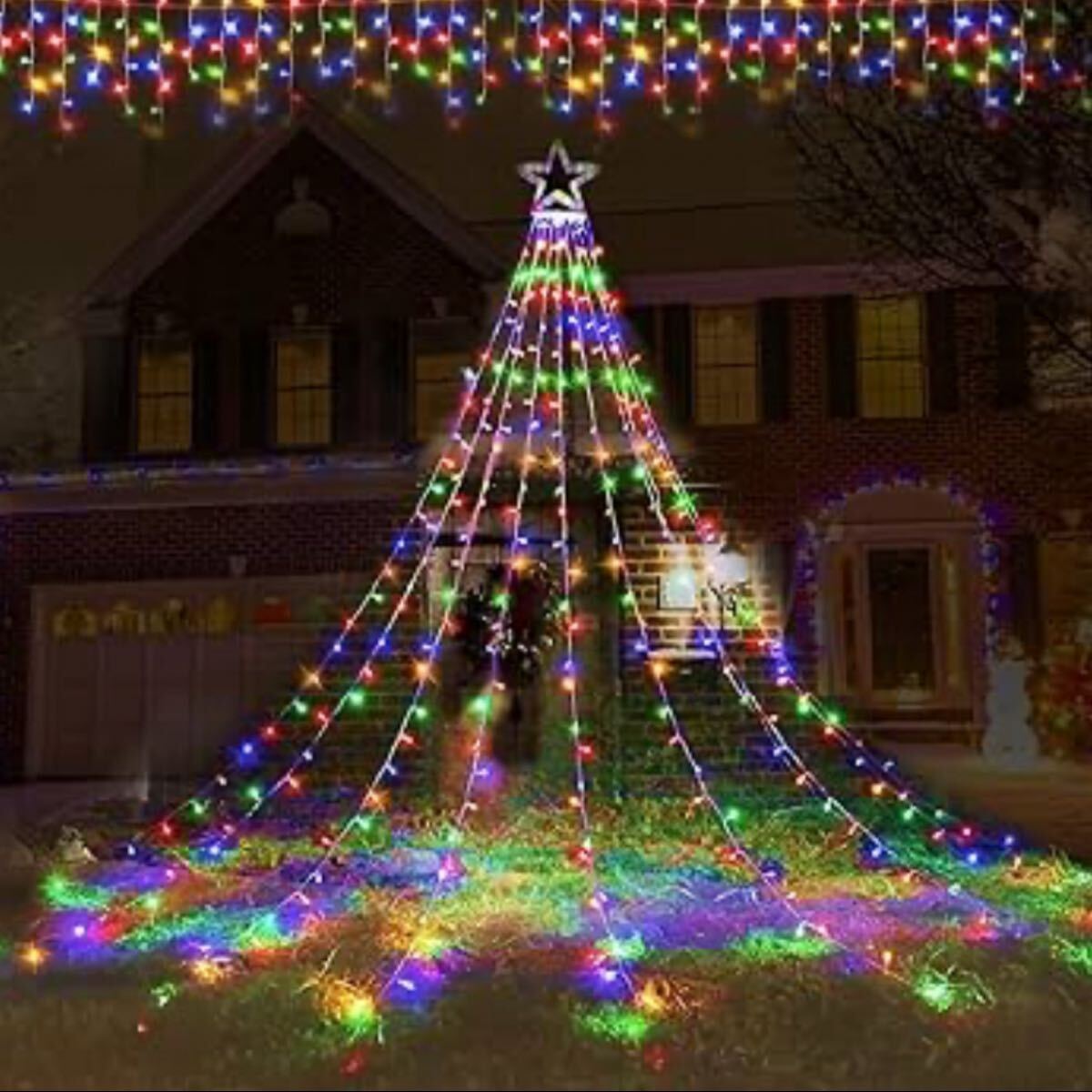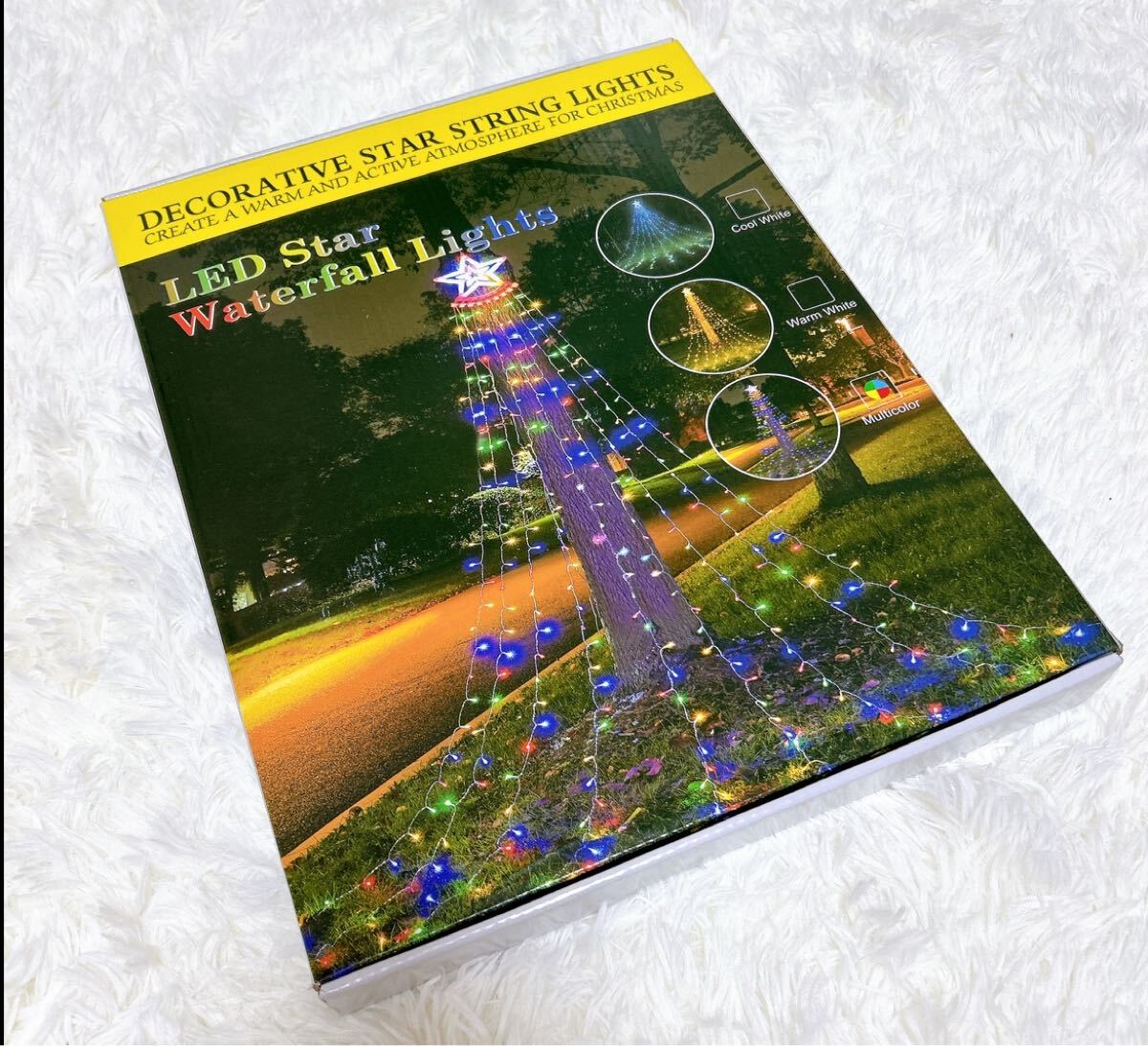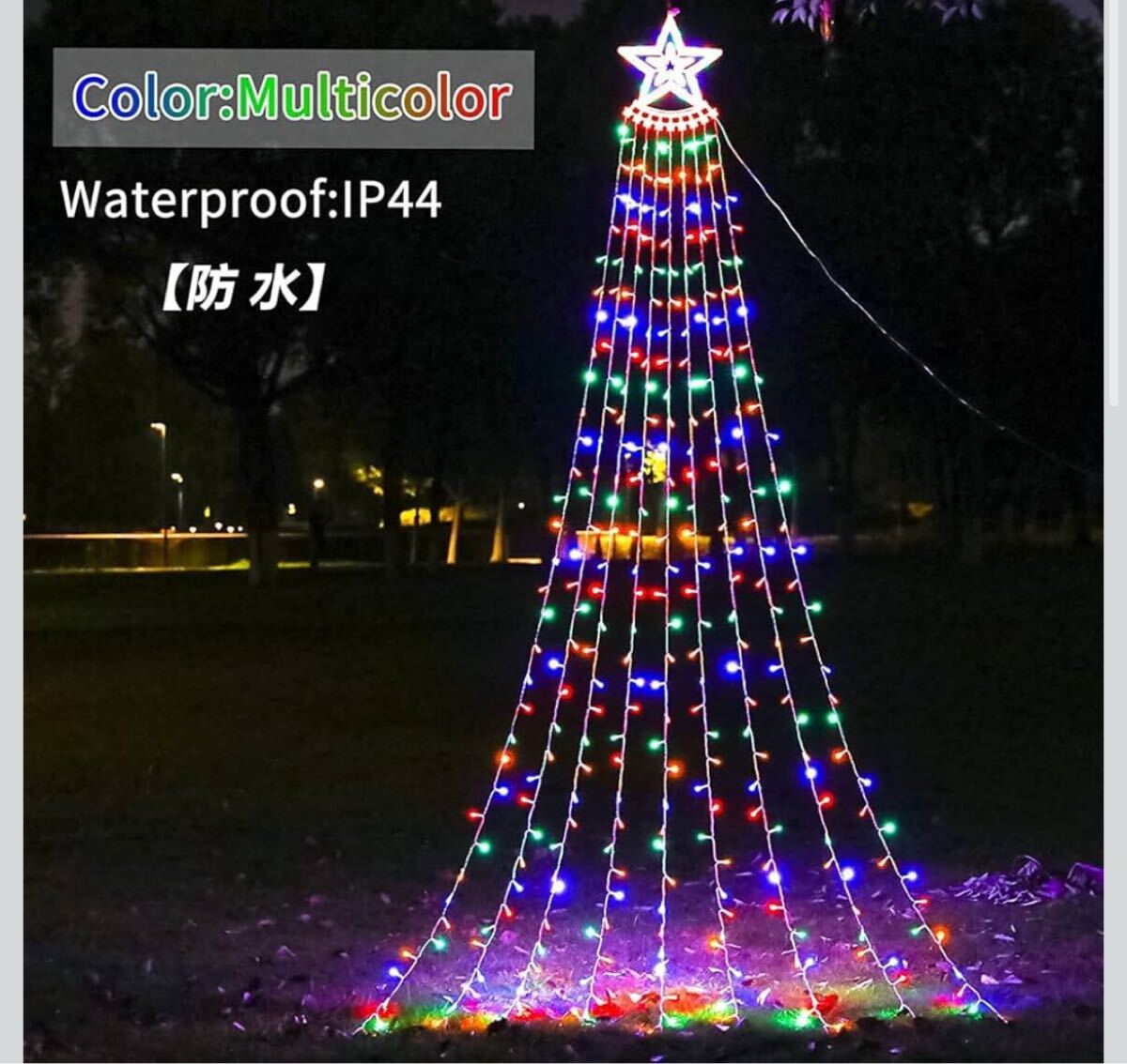 直径32cmの輝くスターから広がる9本のドレープライトが、ツリーのように美しく輝きます。
