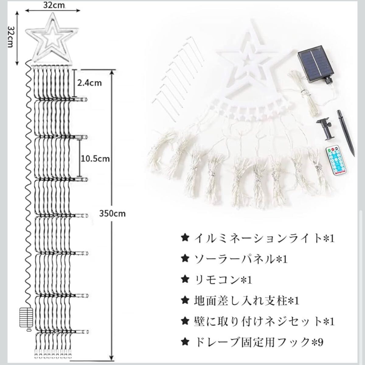 ◎ LED数:350球(星型モチーフ+9本ドレープ)
