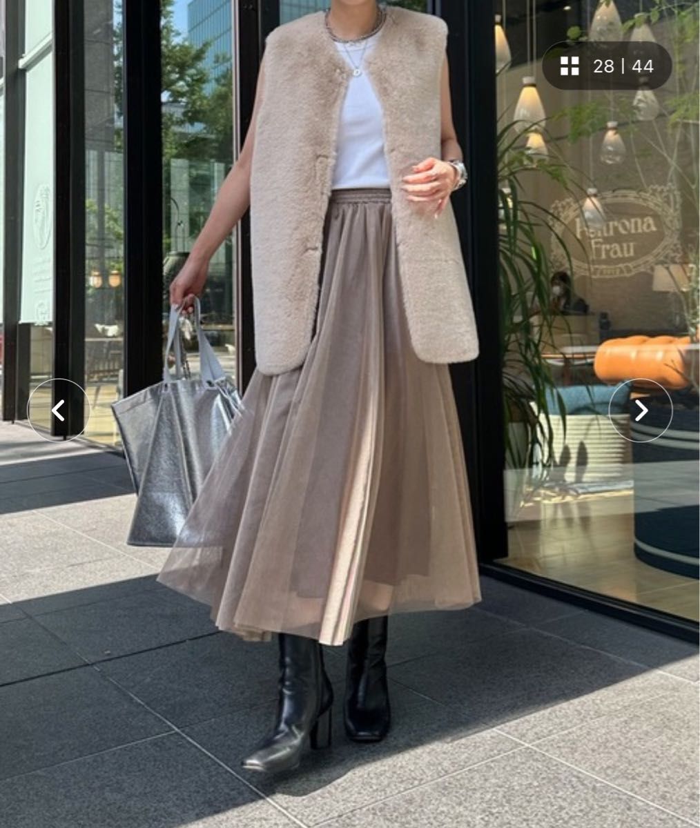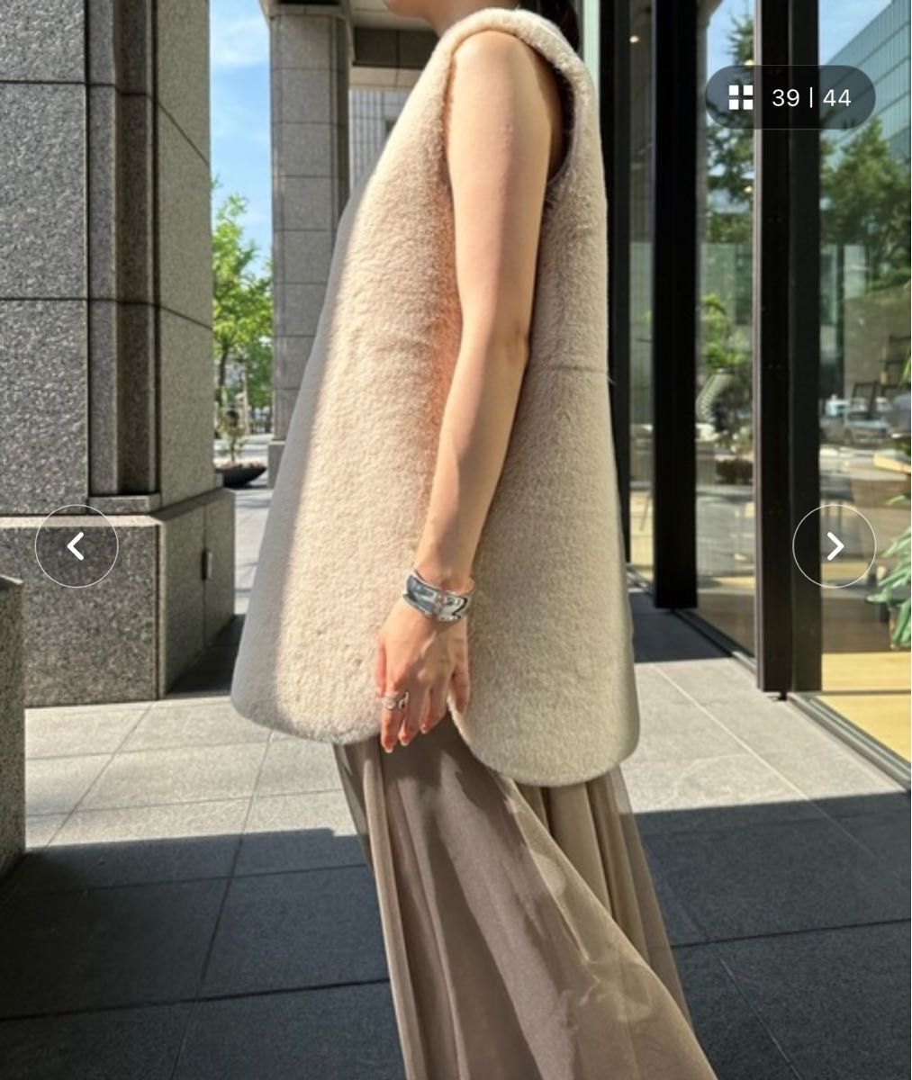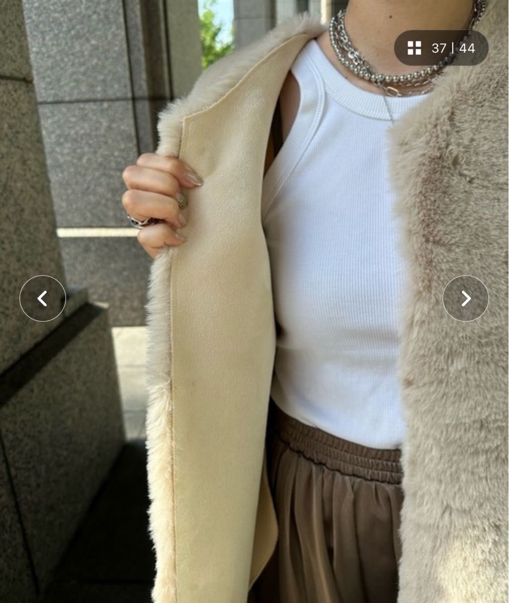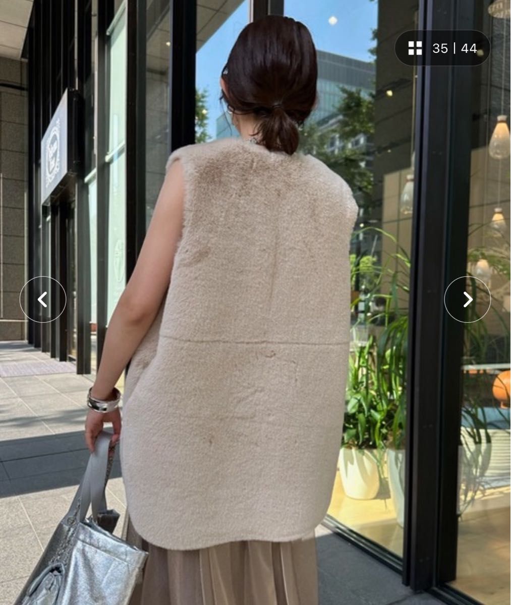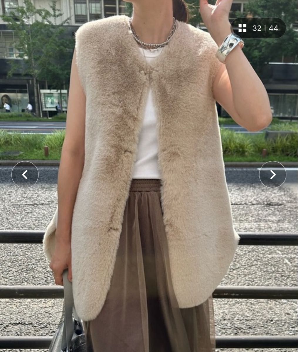 DouDou ドゥドゥ リバーシブルノーカラーファーベスト ファーベスト 裏表 ベージュ 秋冬