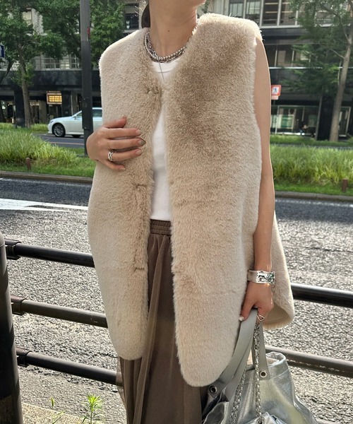 DouDou リバーシブルノーカラーファーベスト